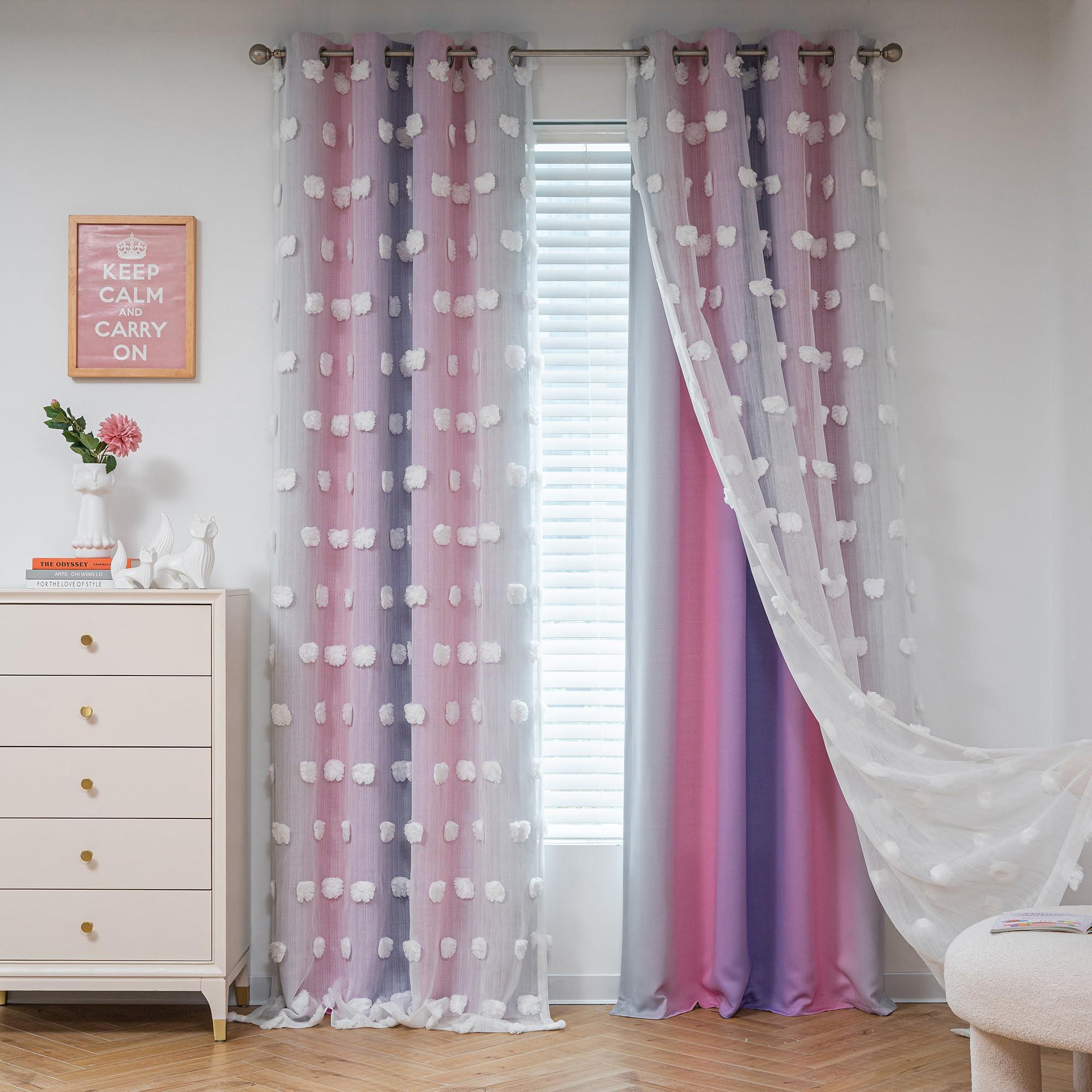 - Unique Design: The unique big pom pom design looks very high-end, update the look for your room. Our 2 layers sheer and curtains window treatments look great in any style of home, offering a lightweight, airy feeling that softens the ambience of a room