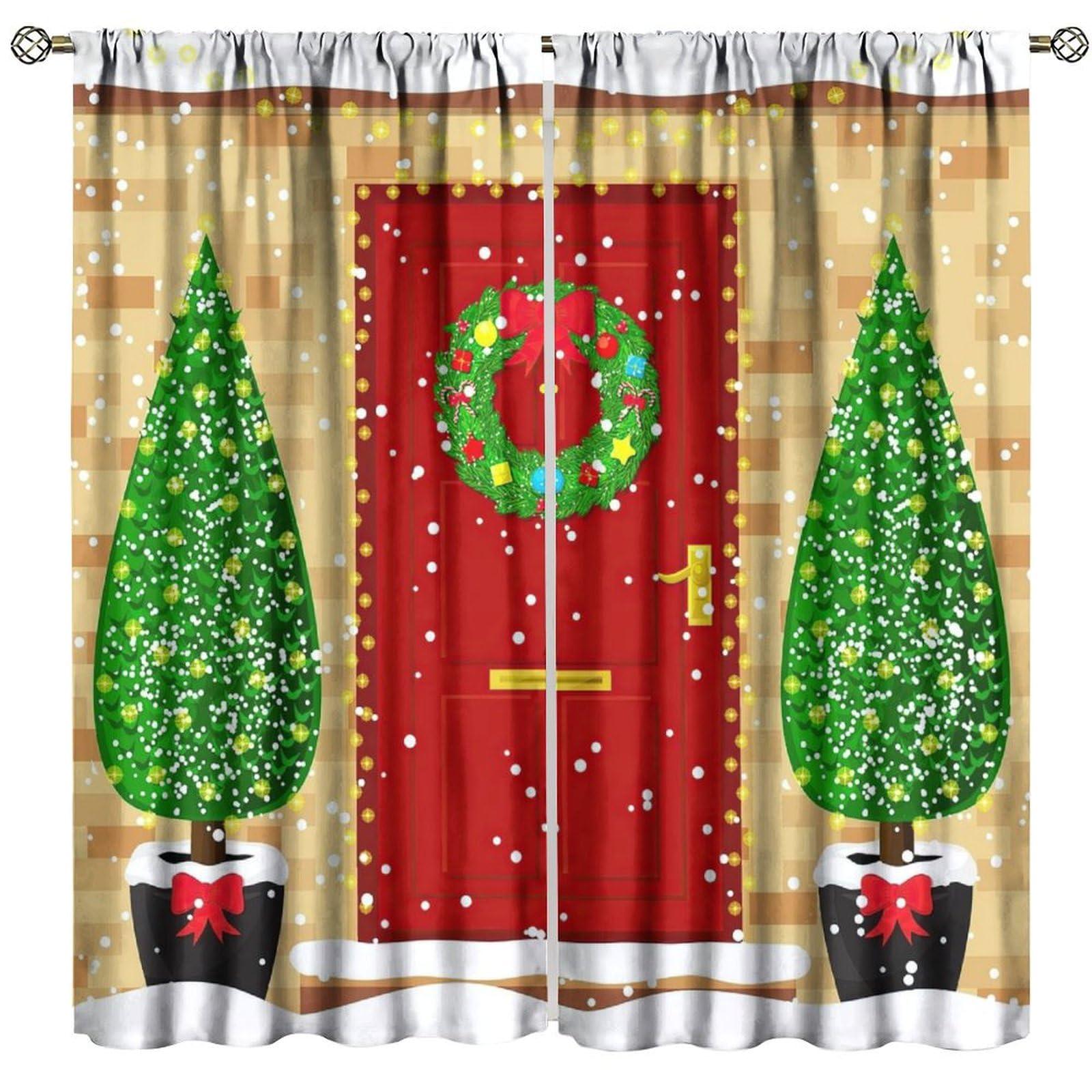- Christmas Blackout Curtains Size: 2 Windows Curtains panels. 1 panel measures 42 (W) * 84(L). The pair of 2 panels together measures 84" (W) * 84" (L) .