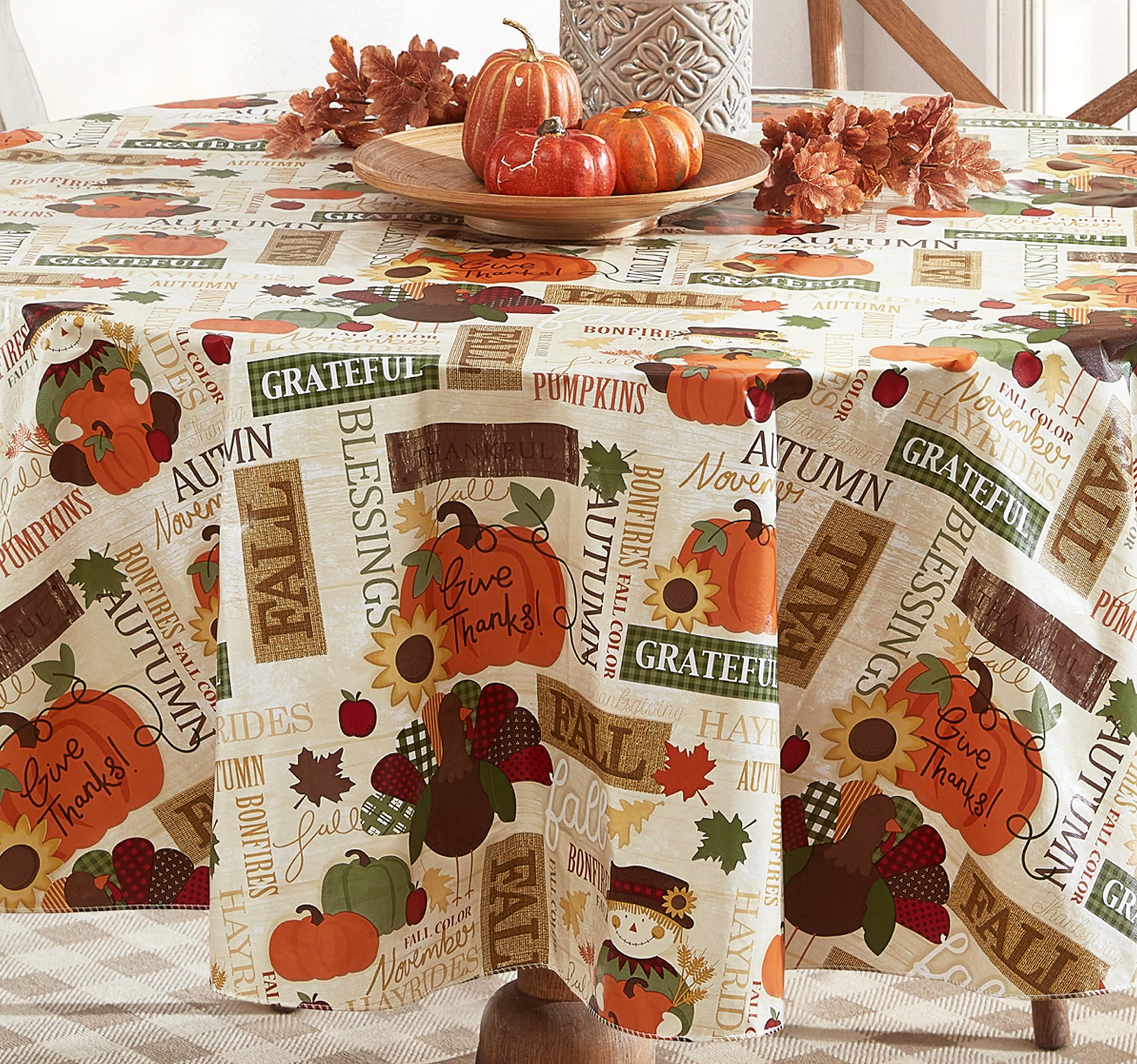 - FEATURES: Beautiful Easy Care Kitchen and Dining Room Tablecloth for Fall, Autumn and Thanksgiving Dining, Entertaining, Parties, Picnics, Restaurants and Cafeterias. Indoor and Outdoor Flannel Back Thanksgiving Holiday Tablecloths are Easy Care - Just Wipe Clean - No Laundering Needed