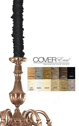 Beautiful Silk like cord cover made of a quality polyester Dupioni fabric. A strip of "Low-Profile" thin velcro is sewn along the entire length of the cover so it does not gap open & gathers easily! Our velcro has a light hold so you can gather the cover easily to your desired look. You must gather the cover as you apply it to create a gathered appearance. PERFECT FOR CORDS UP TO 1 - 5 FT. GATHER GUIDE: TIGHT GATHER - 1 ft - 2 1/2 ft cord / SOFT GATHER -3 ft -4 ft cord / LOOSE GATHER - 4 1/2 ft - 5 1/2 ft cord (longer cords require additional covers). Cover up to 8 cords with 1 cover. MADE IN USA