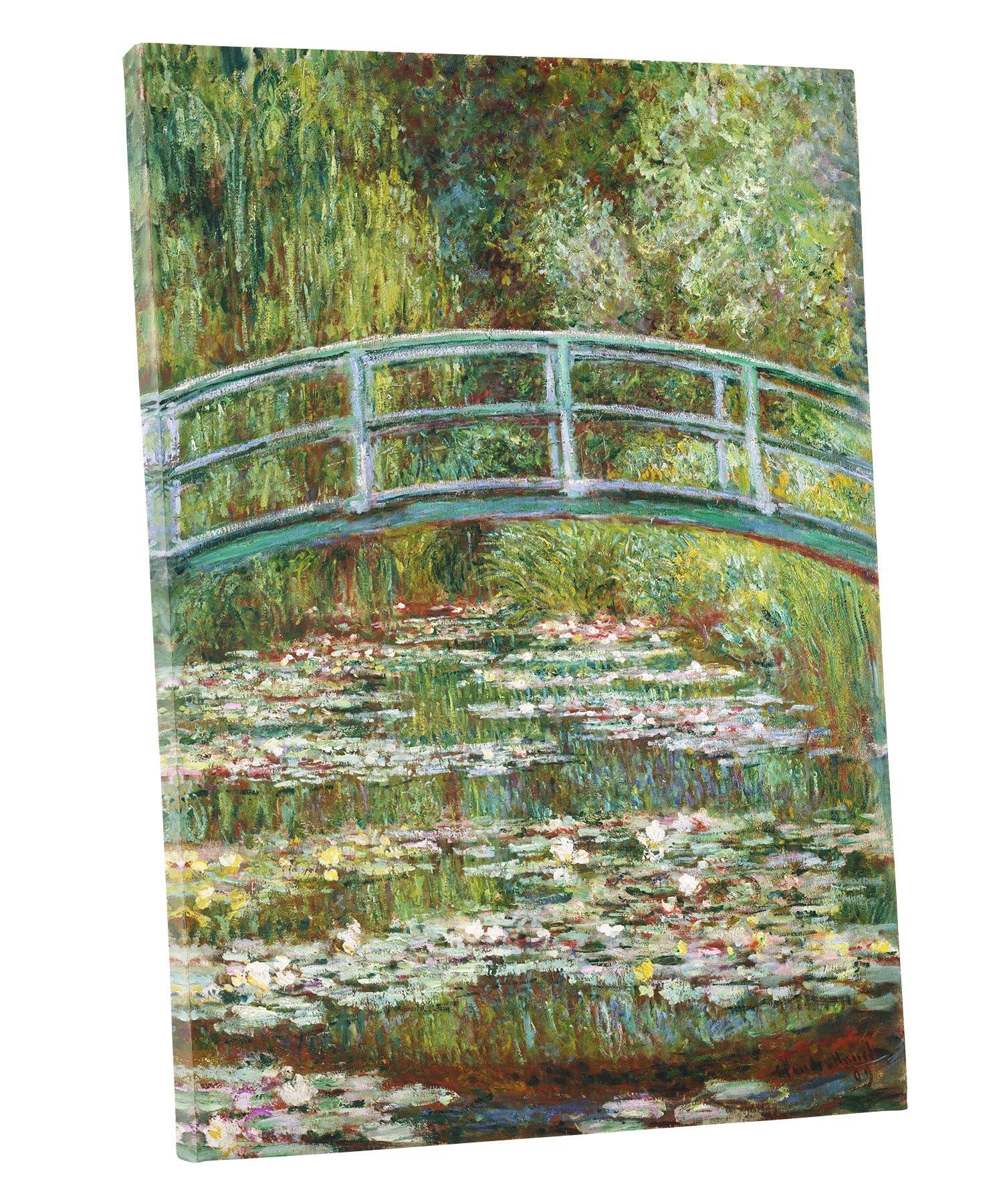 In 1893, Monet, a passionate horticulturist, purchased land with a pond near his property in Giverny, intending to build something "for the pleasure of the eye and also for motifs to paint." The result was his water-lily garden. In 1899, he began a series of eighteen views of the wooden footbridge over the pond, completing twelve paintings, including the present one, that summer. The vertical format of the picture, unusual in this series, gives prominence to the water lilies and their reflections on the pond.