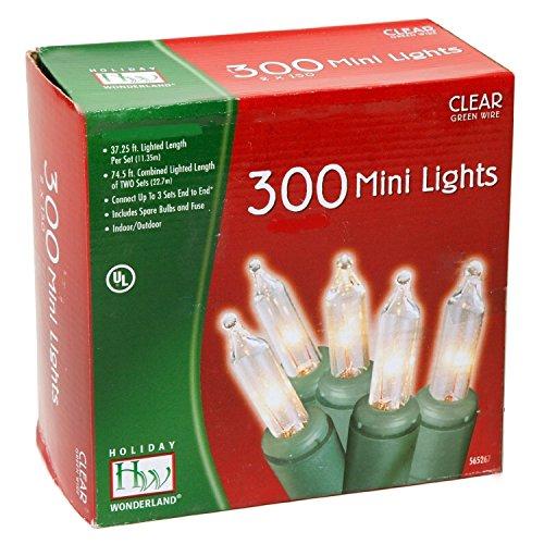 Holiday Wonderland 3 x 150 Lights Clear String To String Light Set Green Wire 3" Spacing 2 5V Lead Wire Length 18" 37 25' Lighted Length and 39' Total Length for each 150 light strand Replacement Bulb 3F/2R/1 3 Sets Of Lights Can Be Connected Together Comes With 3 Flasher Bulbs 2 Extra Regular Bulbs & 1 Replacement Fuse For Replacement Bulb Use #1115-2-88 TV #513-687.