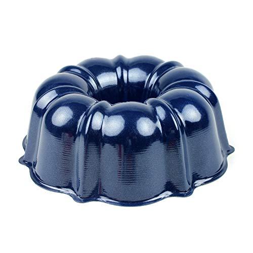 With its PFOA-free nonstick coating, this baking pan allows for easy release and effortless cleanup. Made in the USA of strong but lightweight aluminum (NOT cast aluminum). 6-cup Bundt pan. 1.4 liter, 8 inch x 2-3/4 inch high. Use and Care: 1. Dishwasher use not recommended. Before initial use and after subsequent uses, hand wash with warm soapy water. Extended soaking is not recommended. 2. Before each use, brush with butter or shortening and dust with flour or cocoa to coat. Baking spray containing flour may also be used. Do not use regular cooking spray. 3. Mixes and recipes may vary. Fill the pan no more than 3/4 full to avoid overflow. 4. Metal utensils, scouring pads and abrasive cleaners should not be used on nonstick surfaces.