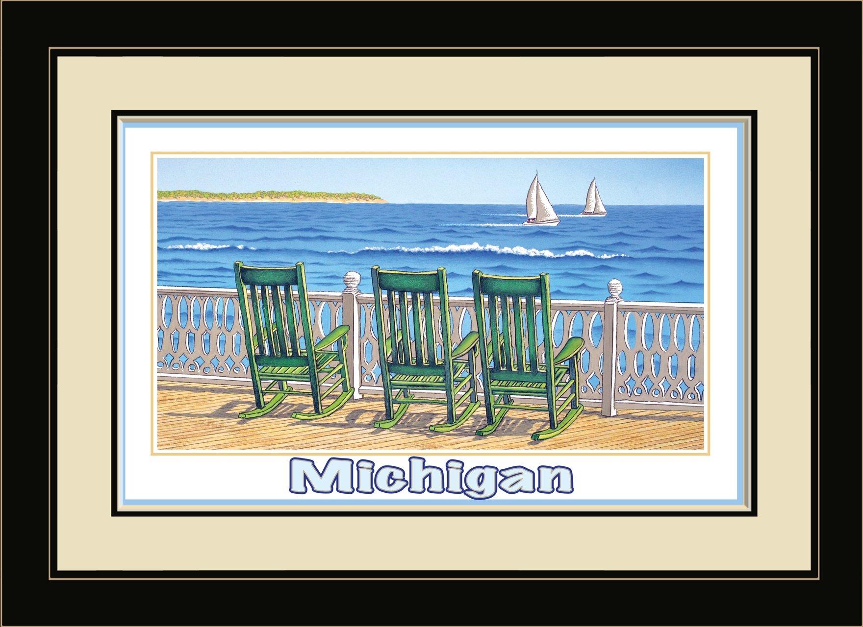 Michigan Upper Deck View by Artist David Linton and Northwest Art Mall. David Linton's art combines the very best of color and light with a precise detail that renders all of his paintings to realism. He has developed a unique masking technique resulting in sharper, more colorful images taking the form of surrealistic reflections of light. This award-winning artist has exhibited in some of the leading galleries and is a well-known lecturer. Linton has been commissioned by many organizations including the 1992 and 1995 America's Cup Syndicates, the America's Cup Organizing Committee, the San Diego Yacht Club, Union bank of California, the San Diego Marine Trade Association and the Arthur Ashe Aids Foundation among others. He has also distinguished himself by completing an epic mural on the campus of the historic Naval Training Center in Point Loma, California. David has also done murals for Starbucks and Golds Gym. David Linton was born in Hartford, Connecticut and moved with his wife to San Diego in 1985. Linton works in oils, water color, acrylics, pen and ink and pastels. With a unique flair, this talented artist sometimes combines mediums to that special effect.