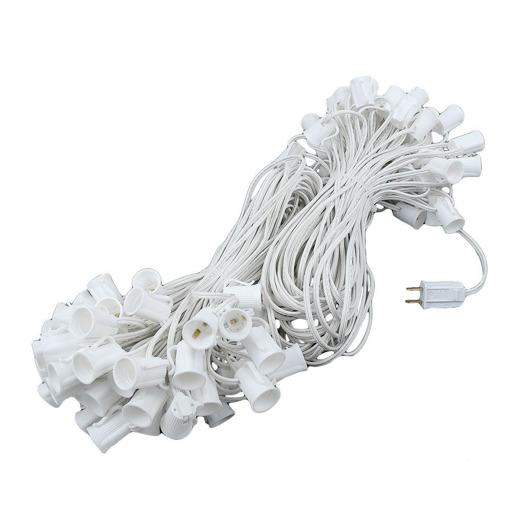 - Novelty Lights offers this commercial grade C9 outdoor string light Christmas stringer that is 200' long with 24" spacing and has a 24" lead from plug to first socket.