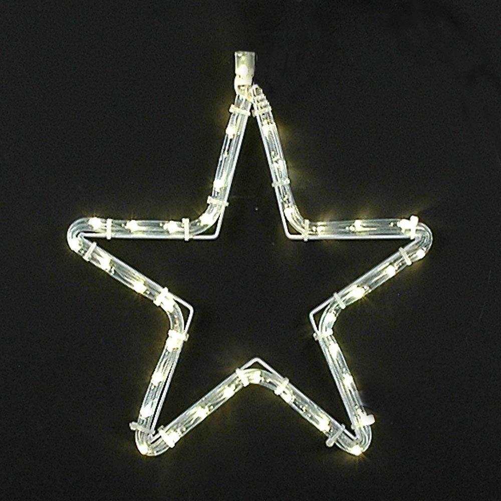 Buy our LED Rope Light Small star sculpture to display in your home or church. Made with brilliant warm white LED rope light formed into a simple 1 foot tall star, you can rest assured this decoration;will shine bright in the darkness. Use this motif to decorate for Christmas, Easter or year-round. Constructed;with UV-protected crystal clear PVC tubing and vertical LED lamps spaced every 1" apart, these;motifs are attached to a powder-coated aluminum frame that won't rust or fade. Utilizing LED technology in our motifs;means they burn cooler, use less energy, and are more;durable and brighter when;compared to motifs;using incandescent bulbs. Each star;motif;comes fully assembled with a 5' Power Cord and hanging ring, perfect for home, church, restrurant, patio, window and special event lighting. 3 season warranty. For indoor/outdoor use. 12" small;Christmas Star LED Rope Light Motif Vibrant Warm;White LED rope light 3 Season Warranty; Bright LEDs spaced 1" apart 12"x 12" Includes 5' Power Cord ,Hanging Ring Durable Frame Won't Chip or Fade UV treated rope light Energy Efficient Fully Assembled For Indoor/Outdoor Use Larger;24" Star also available for a varied display!;