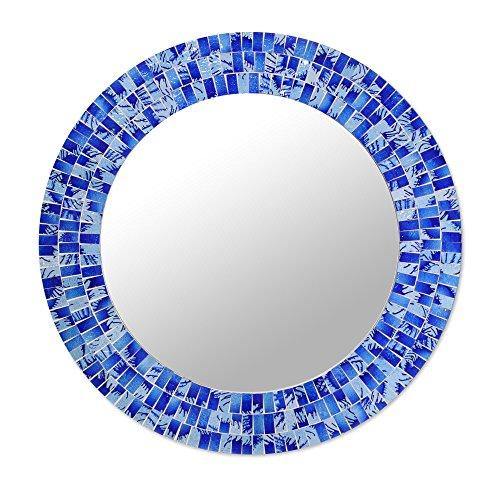 About this item: Hypnotic patterns in a spectrum of blue hues create a fantastic effect in a mirror frame from India. Kamal crafts the frame by hand with painted glass tiles.