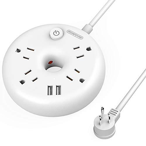 - Modern Circular Design Power Strip: Cute power strip fits nicely on your desk, nightstand or dresser at home, and cleans up all the cord chaos.Compact and lightweight design wont take up much space in a bag or weigh you down, with cable ties for keeping the long cord organized, makes it ideal for travelling. NO surge protection - To be fully cruise compaliant,cruise essentials.
