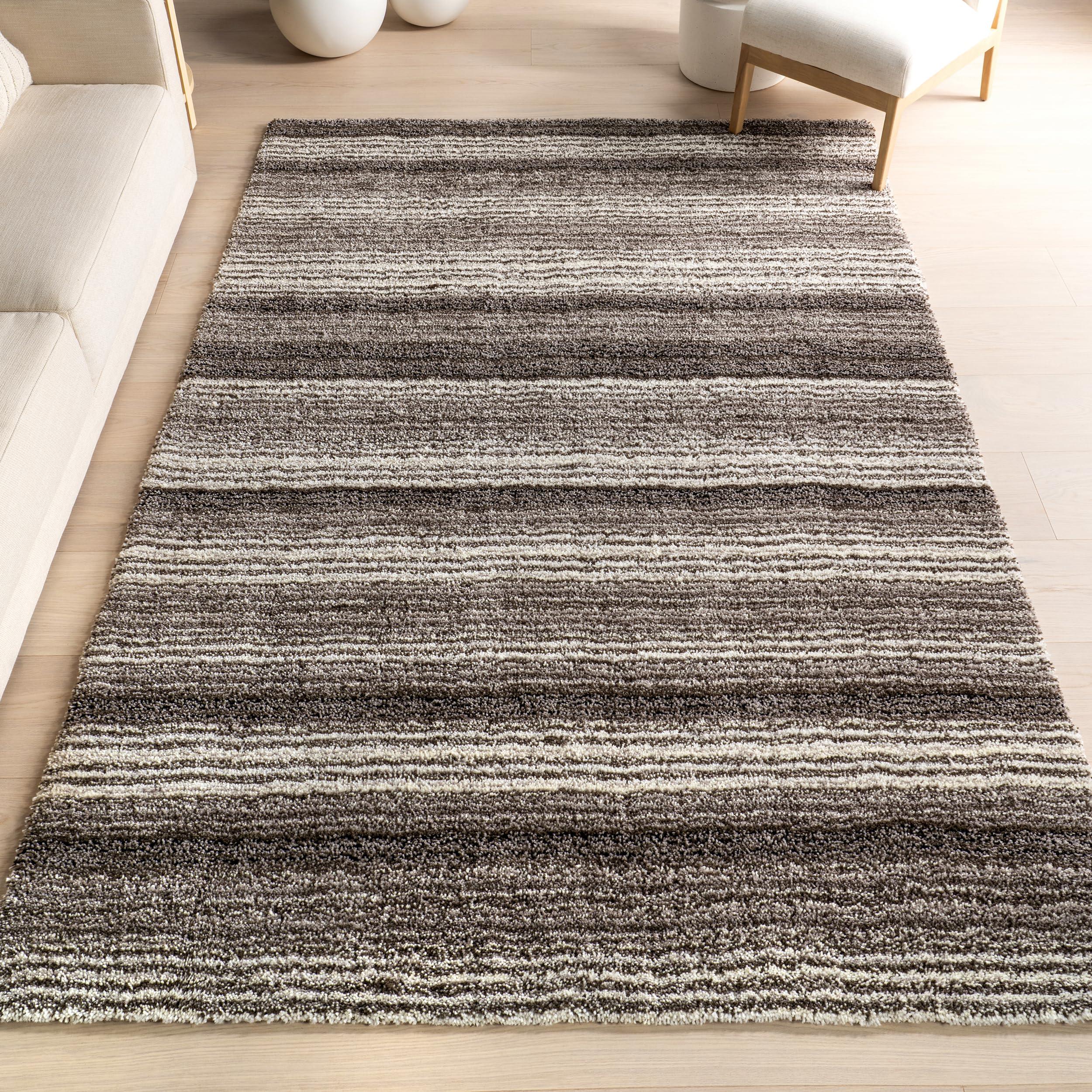 Our nuLOOM Drey Striped Shag Area Rug is a selection of area rugs, perfect for enhancing the style and comfort of your living spaces. Whether you're looking for a rug for your living room or bedroom, we have a wide range of options to suit your needs. Our area rugs come in various sizes, from small rugs to large area rugs, making them suitable for any room. For a cozy and casual look, consider our striped rugs, available in Round 4 size. Our indoor rugs are made from 100% polyester and are suitable for indoor use only. Its timeless striped pattern adds a touch of elegance to any space, while the cut pile construction ensures a plush and luxurious feel underfoot. This rug is designed to be slip-resistant, providing safety and stability on any flooring surface. They are also available in synthetics, making them easy to clean and maintain. Our rugs are soft and comfortable, adding a touch of warmth and elegance to your living room, dining room, nursery room, bedroom, and office. For a more affordable option, check out our clearance rugs section. Our living room rugs are perfect for adding a pop of color and texture to your living room, while our living room carpet provides a soft and comfortable surface for your feet. Our room rugs for the bedroom and soft rugs for the nursery room, bedroom, or office are ideal for creating a warm and inviting atmosphere in your spaces. Our large rugs are for the living room and large rugs are also for the dining room, nursery room, bedroom, and home office. Upgrade your space with our indoor rug that brings together comfort, style, and durability in one beautiful package. Browse our collection today and find our nuLOOM Drey Striped Shag Area Rug for your home.