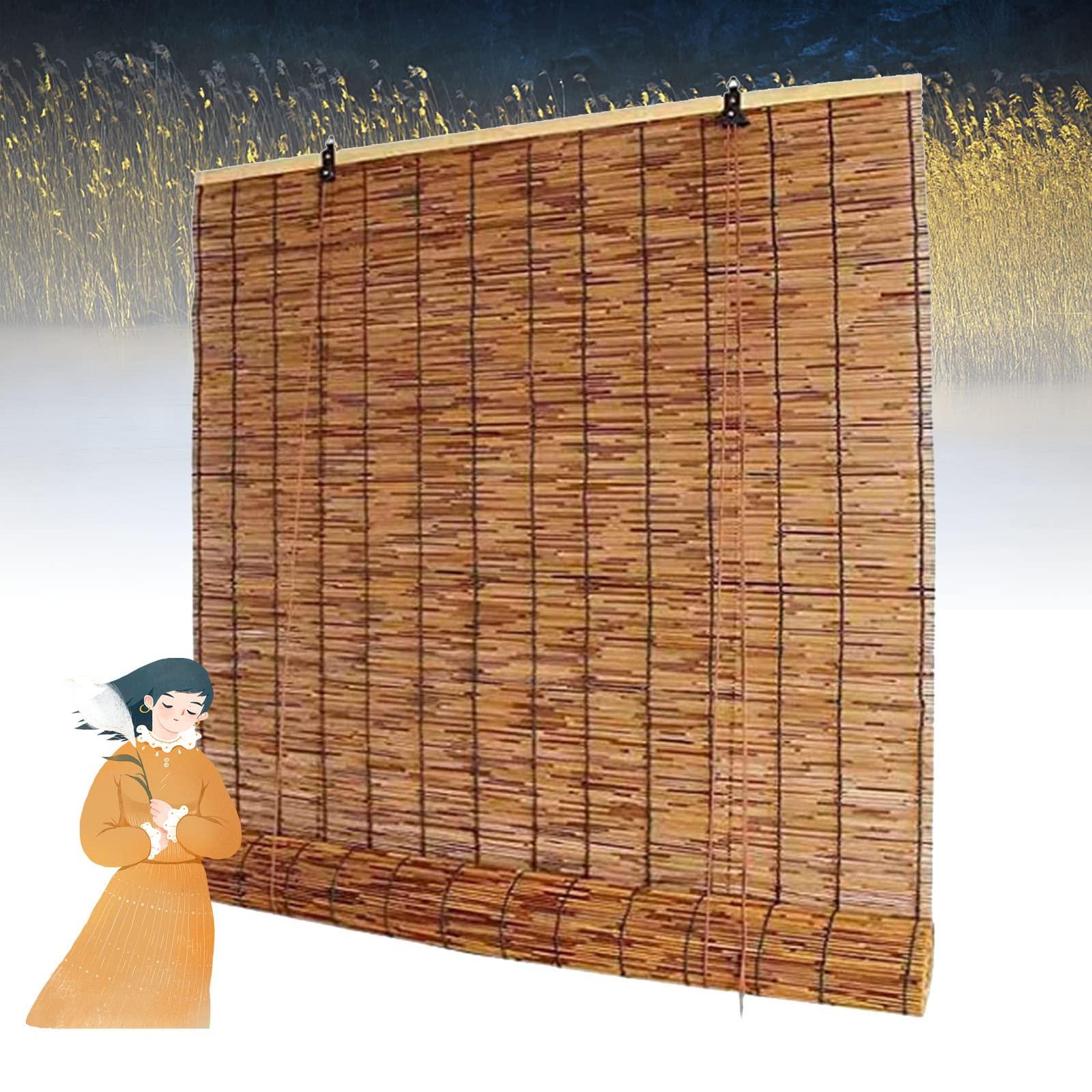 OCAZI Roll-up Reed Shade Bamboo Shades Outdoor, Natural Bamboo Roll Up Window Blind Roman Shade Sun Shade Bamboo Shades for Patio Bamboo Roll Up Shades 2843inWH Brown