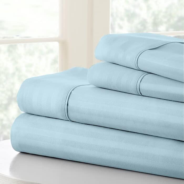 This luxurious, cosy, premium quality sheet set is made up of 400-thread count 100% pure cotton fabric. Sleep better and wake up each morning feeling refreshed and full of energy. Silky soft, most comfortable and luxurious bed sheets you can find. Our products are backed by incredible customer service; we are dedicated to making sure you have an excellent experience, from the moment you place your order until after you begin using your new bedding. Our high-quality designs match any decor and make the ultimate gift idea for men and women, Moms and Dads, Valentine's - Mother's - Father's Day and Christmas. Best for any room in your house - bedroom, guest, kids room, vacation home. Create a welcoming environment and a restful feeling in the bedroom with this TOP QUALITY . Youll find yourself getting a restful night of sleep on our comfortable bed sheets. CARE INSTRUCTIONS: Machine wash in cold water with similar colors. Tumble dry low. Do not bleach.