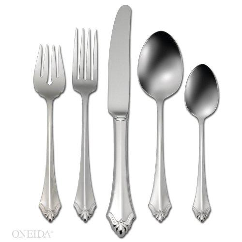 This 5-piece place setting with service for one includes a place knife, place fork, place spoon, salad fork, and teaspoon. Crafted from high quality 18/8 stainless steel, the 18 percent chromium aids in corrosion resistance, while the 8 percent nickel combines luster and shine with durability and strength. All Oneida flatware is dishwasher-safe and contains a lifetime warranty. --Lea Werbel