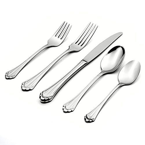 An elegant accent for formal entertaining or a romantic dinner for two, the unique and classic Marquette flatware design features beaded rims and fluted tips. Great for family dining or entertaining, this 5-piece place setting includes a teaspoon, place spoon, place knife, place fork and salad fork. This distinctive flatware also features 18/8-grade stainless steel for maximum protection against corrosion.