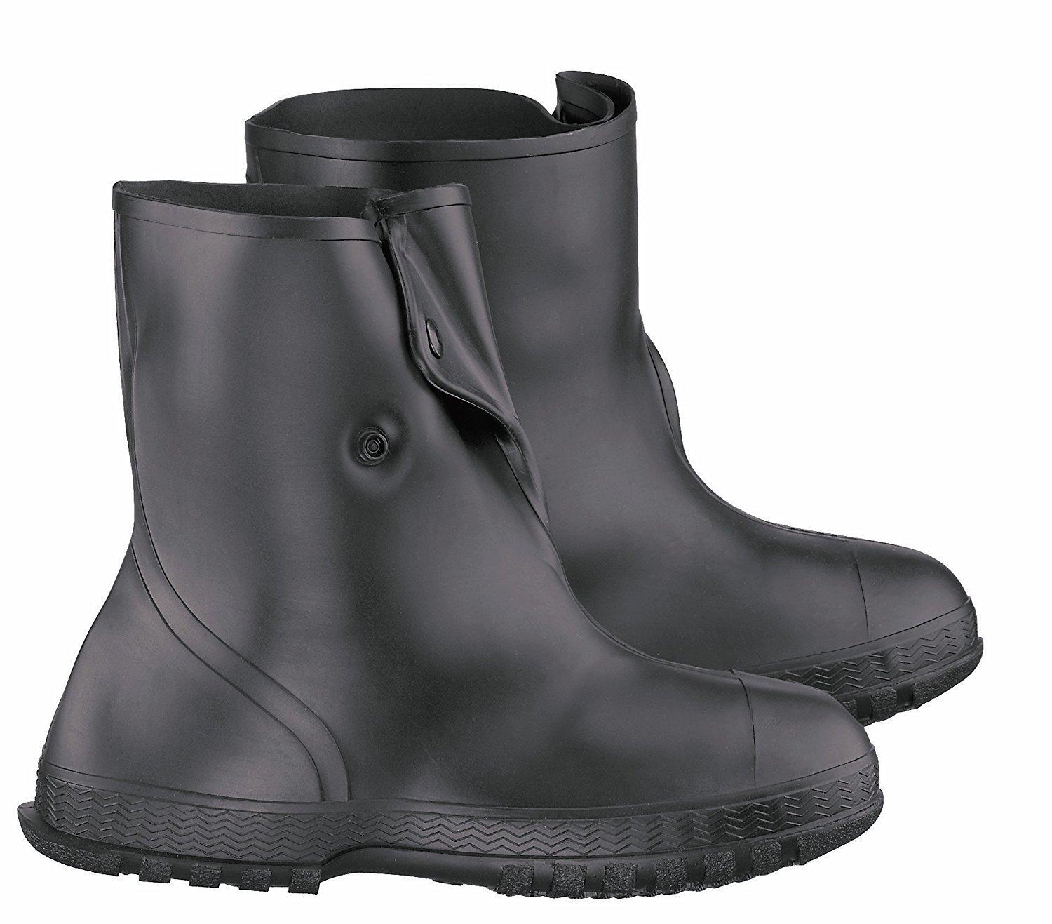 Premium overshoe and overboot protection. Heavy Flex-O-Thane PVC construction for added durability. Excellent for use in construction, farming, utilities and food processing. Injected molded seamless construction. Excellent cold weather flexibility. Self-cleaning, slip resistance outsole. Kick off lug for easy on and off. Fits over most work shoes and boots. 4-Way cleated outsole is self cleaning with maximum slip resistance. Measures 14" length by 5-1/8" width by 10-1/2" height.