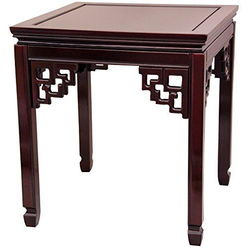 This is a simple, beautiful lamp table, with a large table top perfect next to a sofa or chair arm. Crafted from solid, kiln dried Rosewood, with distinctive hand carved pierced key design leg supports on all four legs. Note this table is shipped with the legs removed for safe shipping; simple assembly required. These are unique end tables, providing outstanding value in terms of price and quality. They are hand carved hand crafted, fine quality tables, great for a end table or nightstand, built by professional wood workers and artisans at a family owned furniture maker in southern Guangdong province.