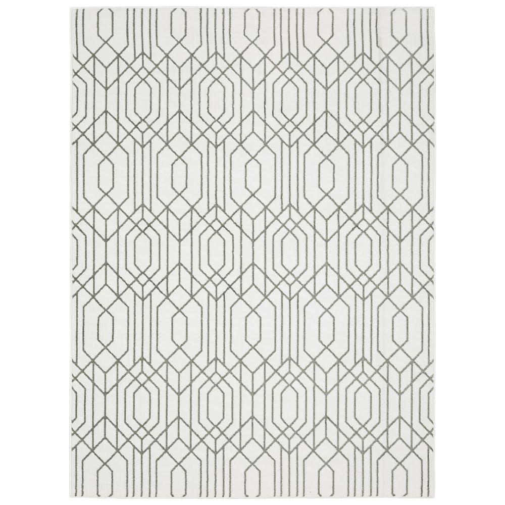 The beautifully understated Montecito collection is power-loomed of soft polyester. The multi-level yarn system and simple, yet on point coloration, perfectly emphasize the graphic patterns. Made in Egypt. More Details Secondary Colors : Grey Outdoor Safe? : No Has Fringe? : No Machine Washable? : No Traffic Recommendation : Normal Border? : No On trend two-tone modern art deco inspired style indoor area rug Power-loomed of soft polyester fibers Rug colors are silvery gray and creamy white Rug backed by woven polyester, the use of a rug pad is recommended Regular vacuuming without the beater bar helps rug remain attractive and serviceable; clean spills immediately by blotting with clean sponge or cloth with mild detergent; periodic professional cleaning is recommended