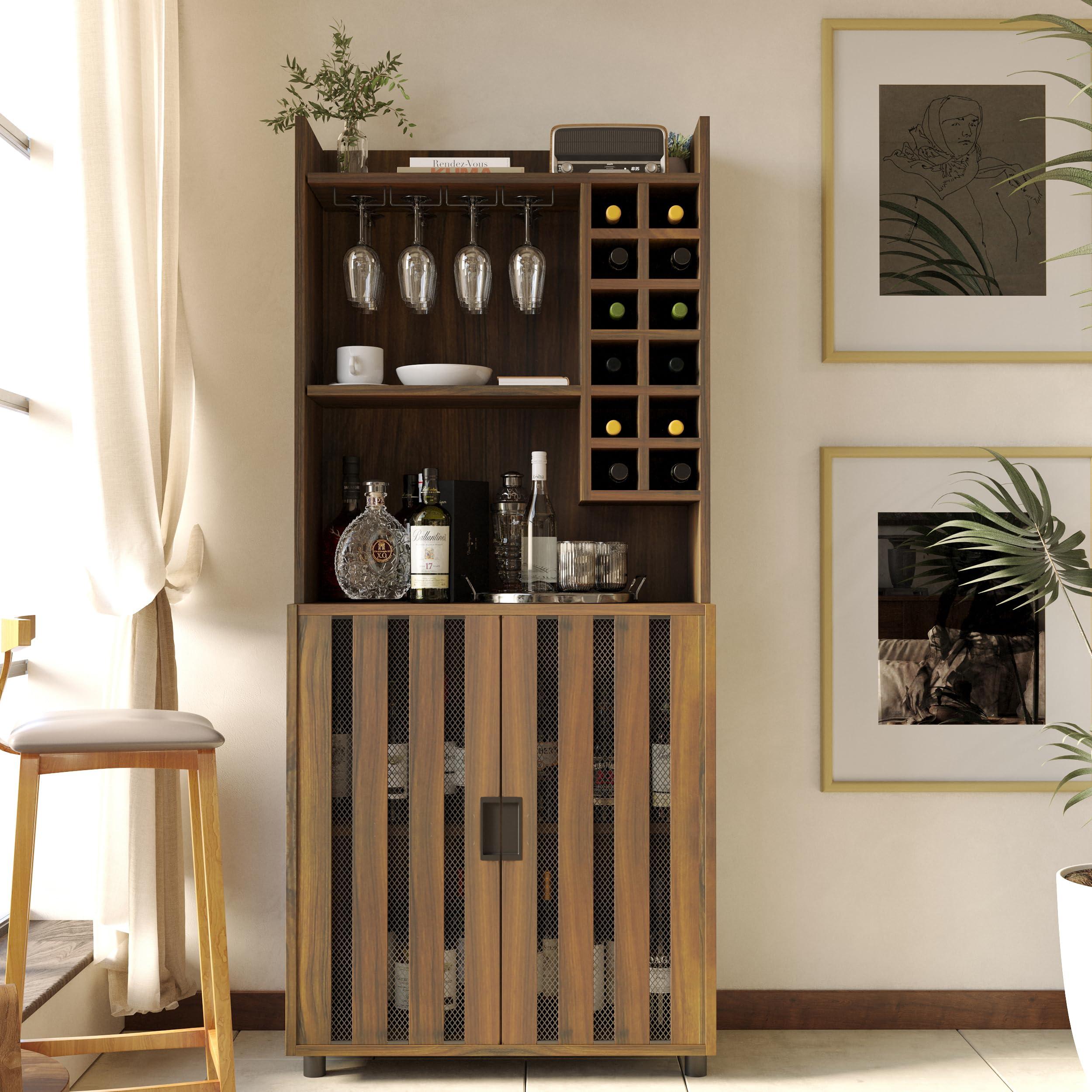 - Stylish Cabinet Doors: The cabinet doors feature a grid and wooden slat design that not only adds a touch of elegance, but allows you to see your wine bottles without having to open the door. The door features a grooved handle, allowing you to open and close it with ease. Due to the unique design of the door, it presents a perfect fusion of taste and modernity, making the entire cabinet more beautiful and becoming a highlight of home decoration.