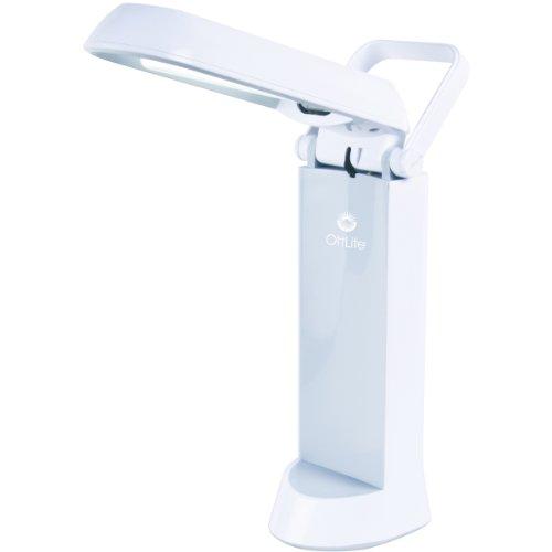 13w Folding Task Lamp Otitis helps you see everything clearly and comfortably with our incredible Otitis Illumination - a precise balance of contrast and brightness unlike any other. The 13w Folding Task Lamp features a unique fold-up design with a handle for easy portability of the low heat, low glare illumination. Folding shade design features automatic on/off operation. With its small base footprint, this lamp fits easily on most desks and workstations.