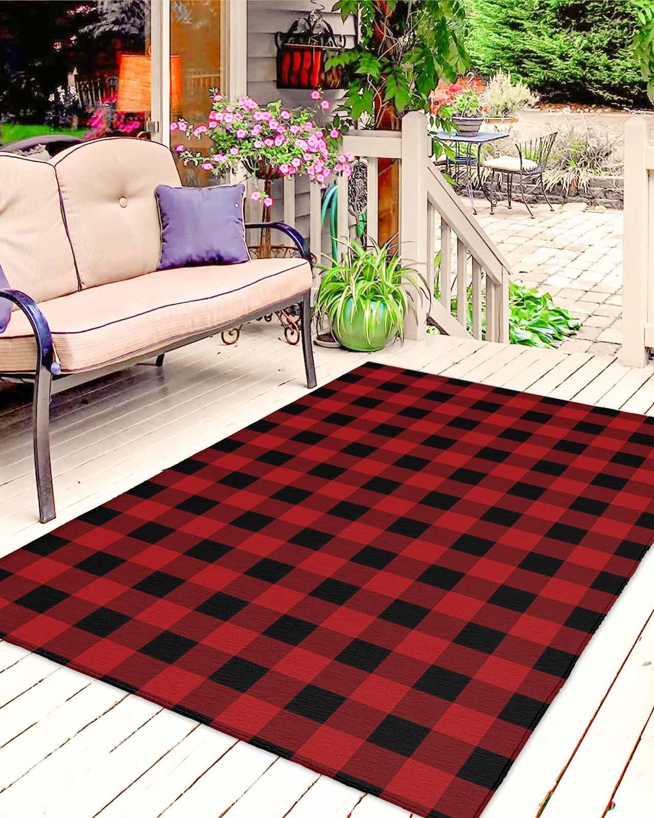 - Red Black Plaid OUTDOOR/PATIO/GARDEN DECOR: Buffalo Check Geometric Checker Pattern Home Decor Welcome Front Door Rugs for Entrance Way/ living Room;Ideal Holidays Gifts For Your Family(Wife) Women/Men Friends As Housewarming Gifts