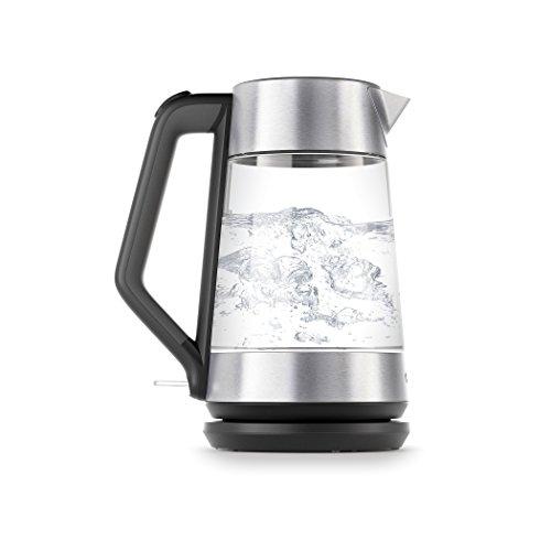 Elegant and durable, the OXO Brew Cordless Electric Kettle boils water faster than the microwave and safer than the stovetop. Features include auto shut-off, stay-cool handle, easy-to-read measurement markings and a soft-open lid. The Kettle heats on a 360 swivel base, is cord-free when removed from the base and has an insulated bottom for easy transport. Note: Voltage is 120V/60Hz.