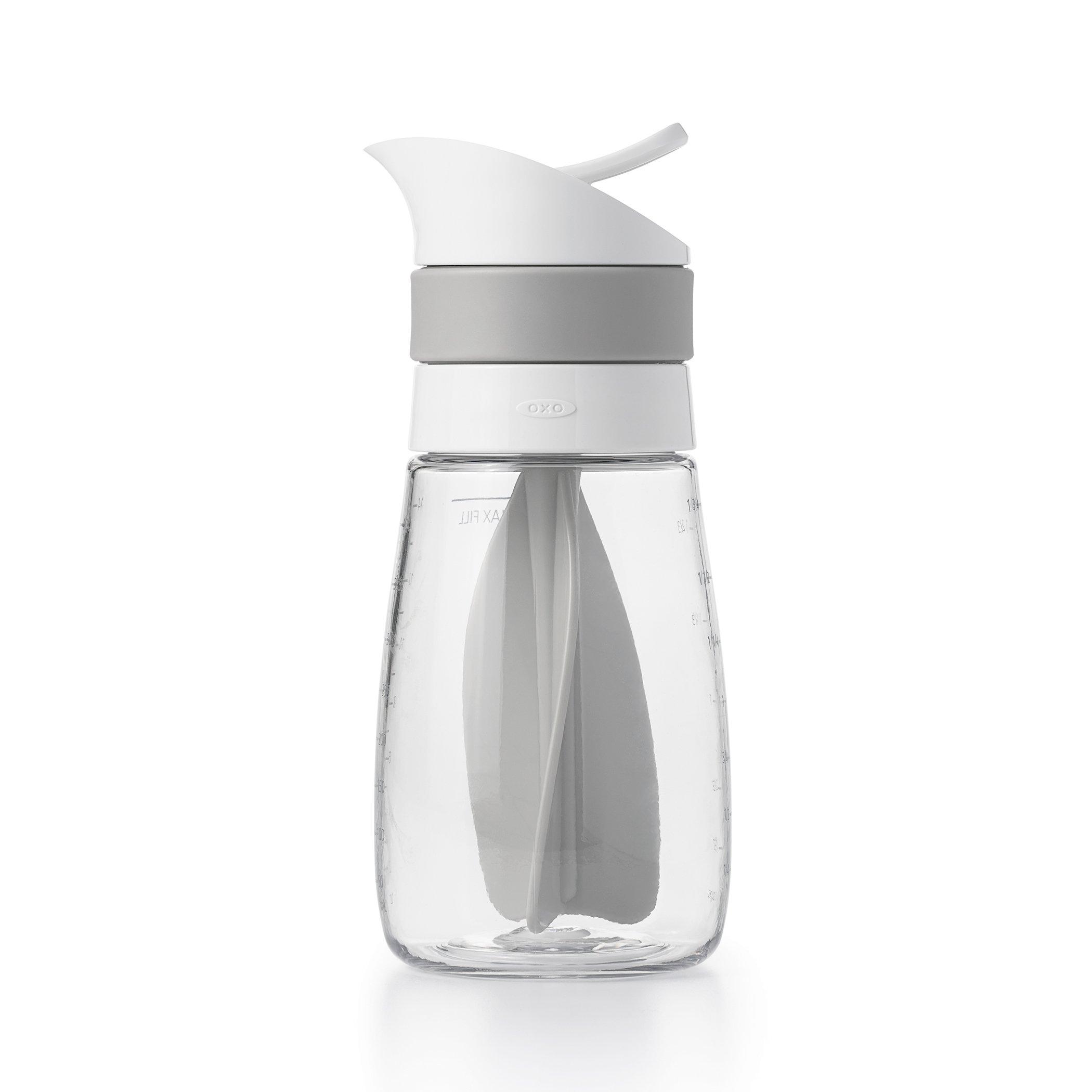 Mix, serve and store dressing in one convenient container with OXO's Twist & Pour Salad Dressing Mixer. The 14-oz (1-3/4-cup) Mixer is leakproof and airtight, so dressing mixes easily and stays fresh for longer. A non-slip ring turns a bi-directional blade for quick mixing of thin and thick dressings. The comfortable ring is easy to grip, even when wet. The Mixer features a wide opening for quickly adding ingredients, plus easy-read measurement markings. BPA free.