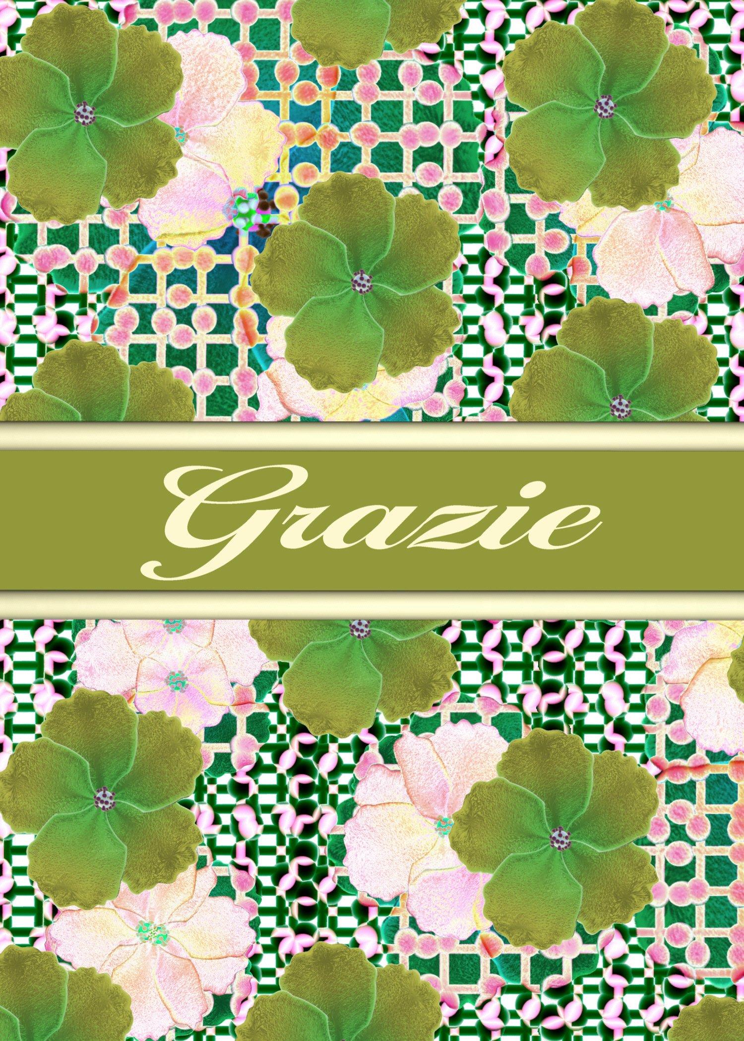 ValxArt Pack-3 Italian Thank You (Grazie) Greeting Card -5\"x7\" Green Flowers