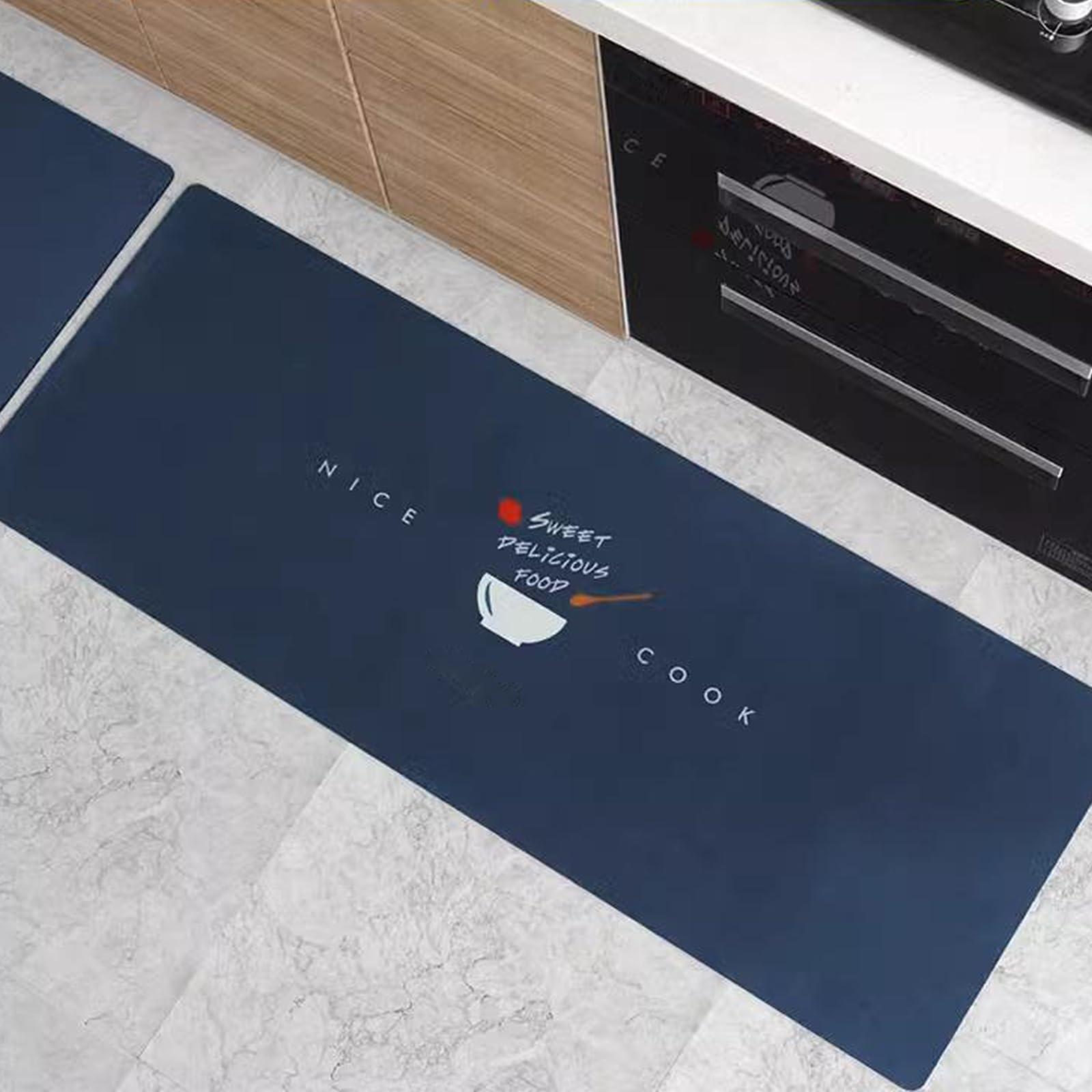- Suede Carpet Floor Comfort MatThis quality kitchen floor mat is made of soft and cozy suede fabric, which is comfortable and elastic to the feet, absorbs water and oil, and is not easy to wrinkle. As a floor rug used in high traffic cooking areas, large size kitchen runner rug is a great way to keep your kitchen clean and tidy. Great stain-resistant properties protect the floor from oil, dampness, sauces or food particles.