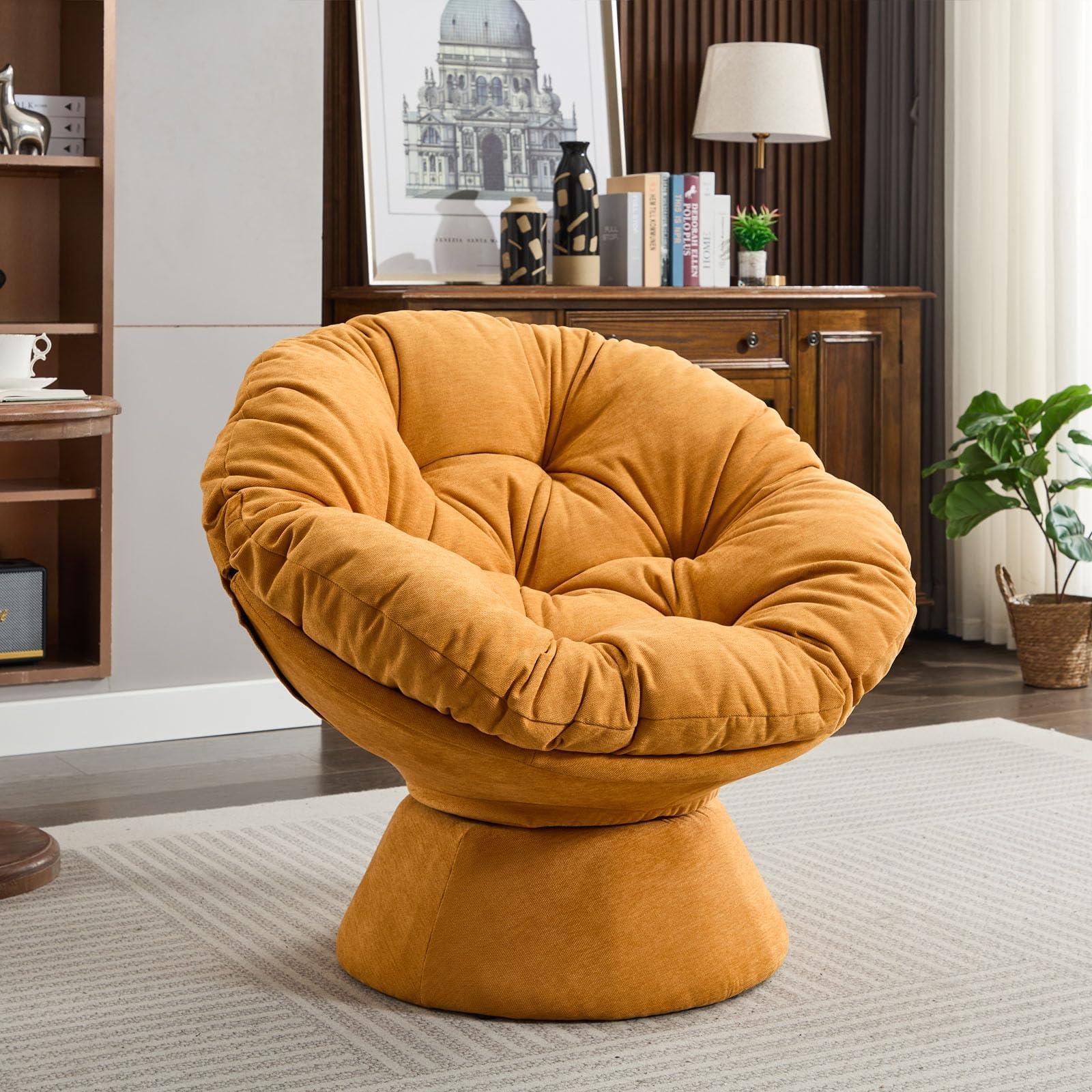 - Thicker Cushion for Upgraded Comfort Selected luxury Chenille fabric, this swivel round chair is soft and breathable. The extra-thick cushion is filled with a high-density sponge, which has good resilience and feels fuller and thicker, allowing you to relax well after a tiring day.