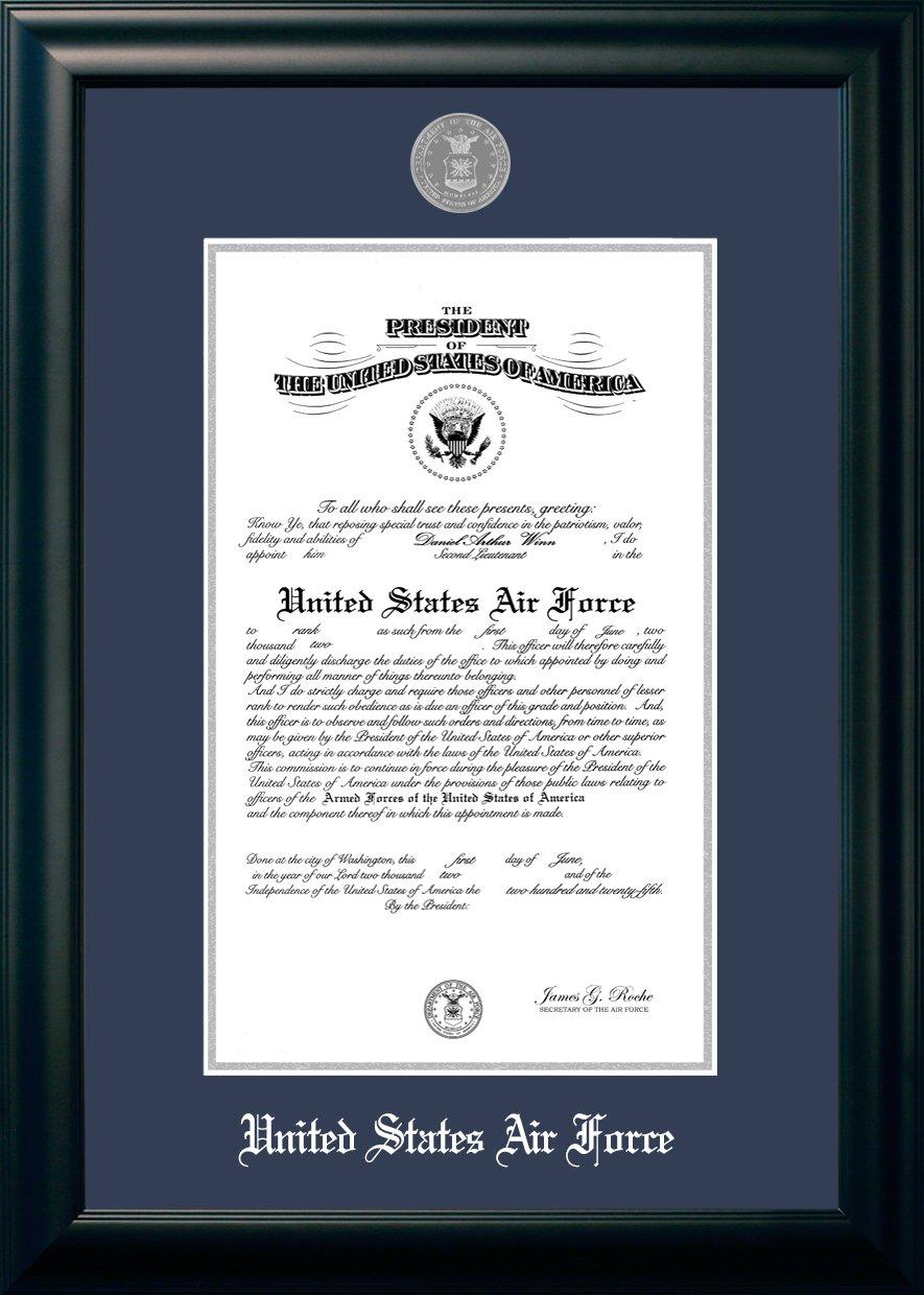 Black satin frame with 22k silver plated medallion. Acid free mat Boards to help preserve and protect your valuable document. These prestigious, yet affordable frames are custom made for your military achievement and allow for easy insertion- there's no need to send your valuable document. Made in the USA.