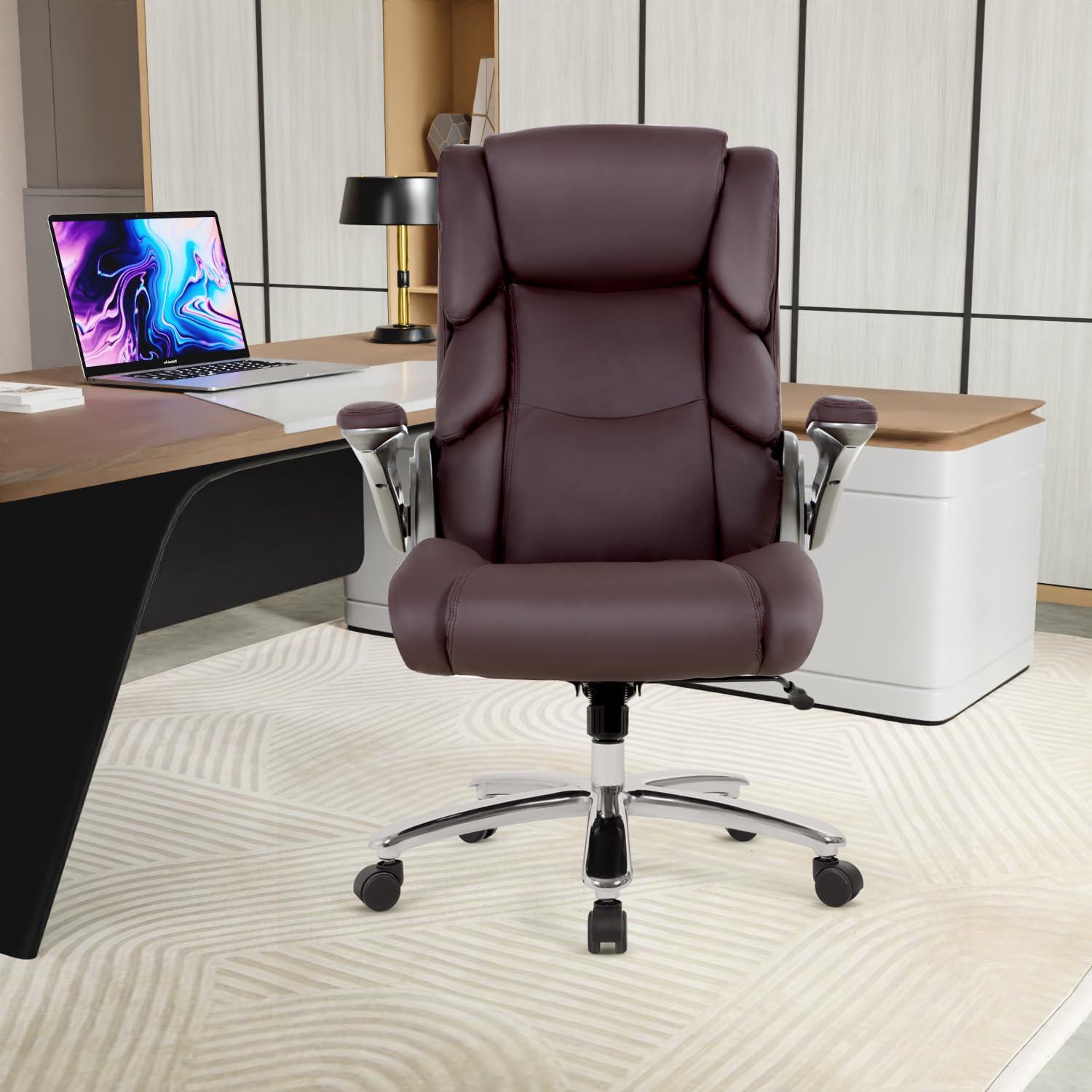 - Premium PU Leather:Crafted from waterproof and stain-resistant PU material, our executive office chair not only looks sleek but is also easy to clean. The high-density sponge padding mimics the look and feel of natural leather, providing a luxurious and upscale appearance. The padded armrests add to the overall comfort, and they can be flipped up for a relaxed posture adjustment.