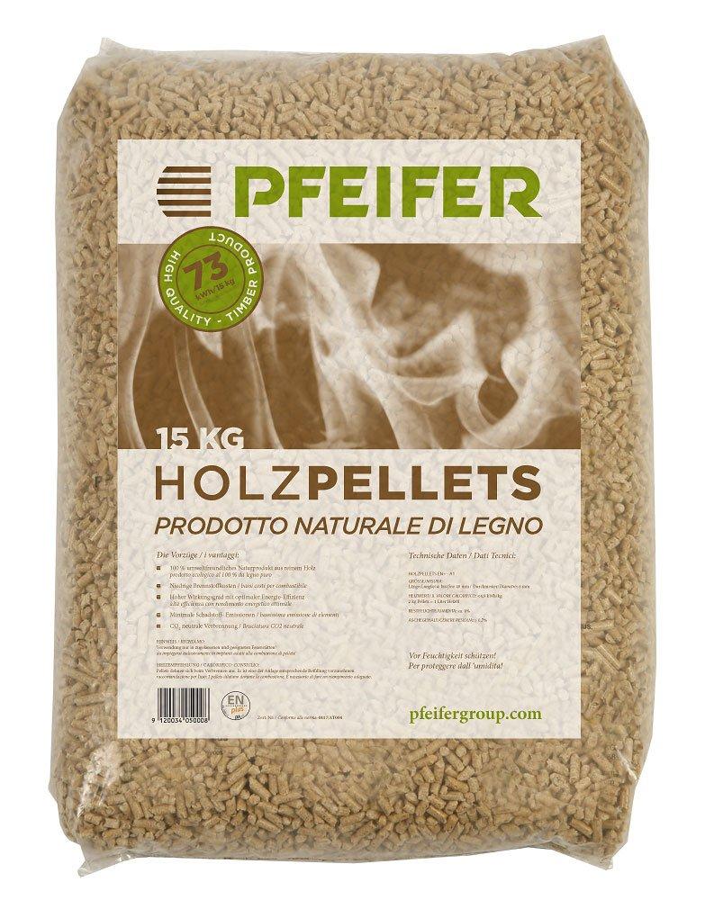 Pfeifer pellet 100% spruce without residue Length: from 5 to 40 mm in diameter: 6 mm Maximum compattazione, absence of spaccature High calorific power: ~ 5.3 kWh/kg (2 kg pellet = approx. 1 liter of diesel for heating) remarkable energy efficiency, excellent value for money. Residual humidity: approx. 8% emissions of minimal pollutants, less costs for warming and ecological warming typology. Mucchio density: > 650 kg/m3 (6 tons of 8 m3 of storage space) saving space for storage and transport costs Ash content: <0.7% greater thermal comfort always Approved according to ENPLUS A1 standard