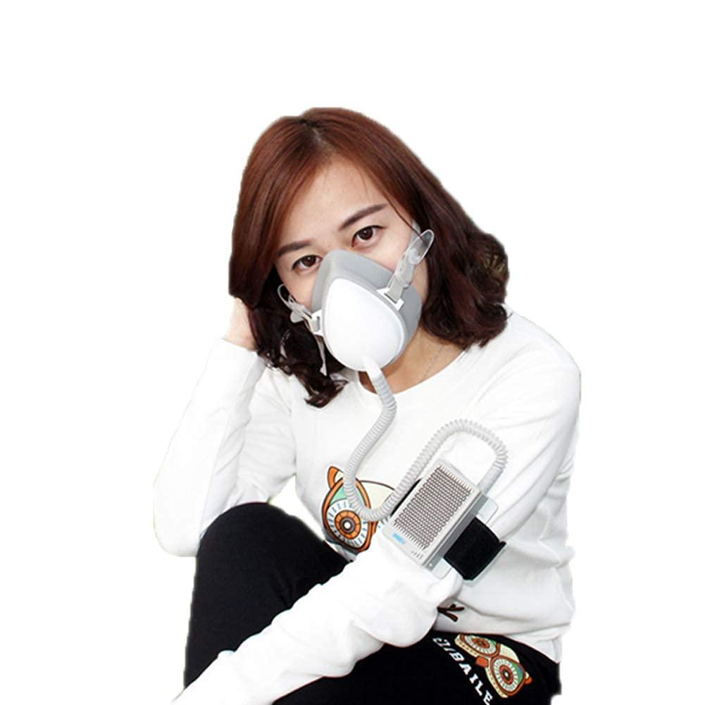 Personal Wearable Electrical Air Purifying Mask with Fan HEPA Filter, air purifying mask powered air purifying respirator Specification: Name:Air purifier & dustproof face protection Battery type: lithium ion battery Battery capacity: 2000mah Input voltage: 5v 1A Working temperature: 0C-50C Low noise :27dB Weight: 252G Purification technology: HEPA/HESA filter Filtration efficiency: 99.7% Air volume: <5 cubic meters per hour Working time: 6.5-12.5 hours Package includes 1* Air Purifier Host 1* Masks 1* Vent Pipe Connector 1* Mask Buckle 1* Round Sticker 1* Hoses 1* Arm / Forehead Band 1* Micro USB Cable 1* Product Manual