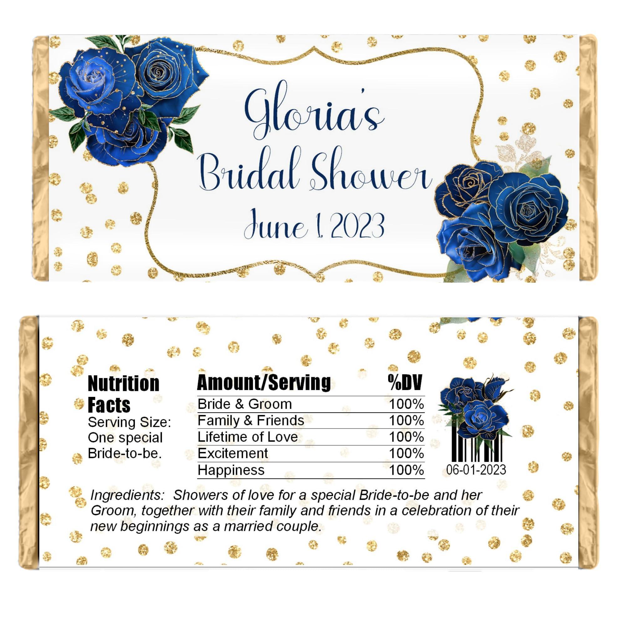 Candy bar wrapper with a design with pretty floral accents on a background of gold dots. This item can be personalized for any occasion and would work well for a wedding, bridal shower or birthday party. This item comes with coordinating foils.