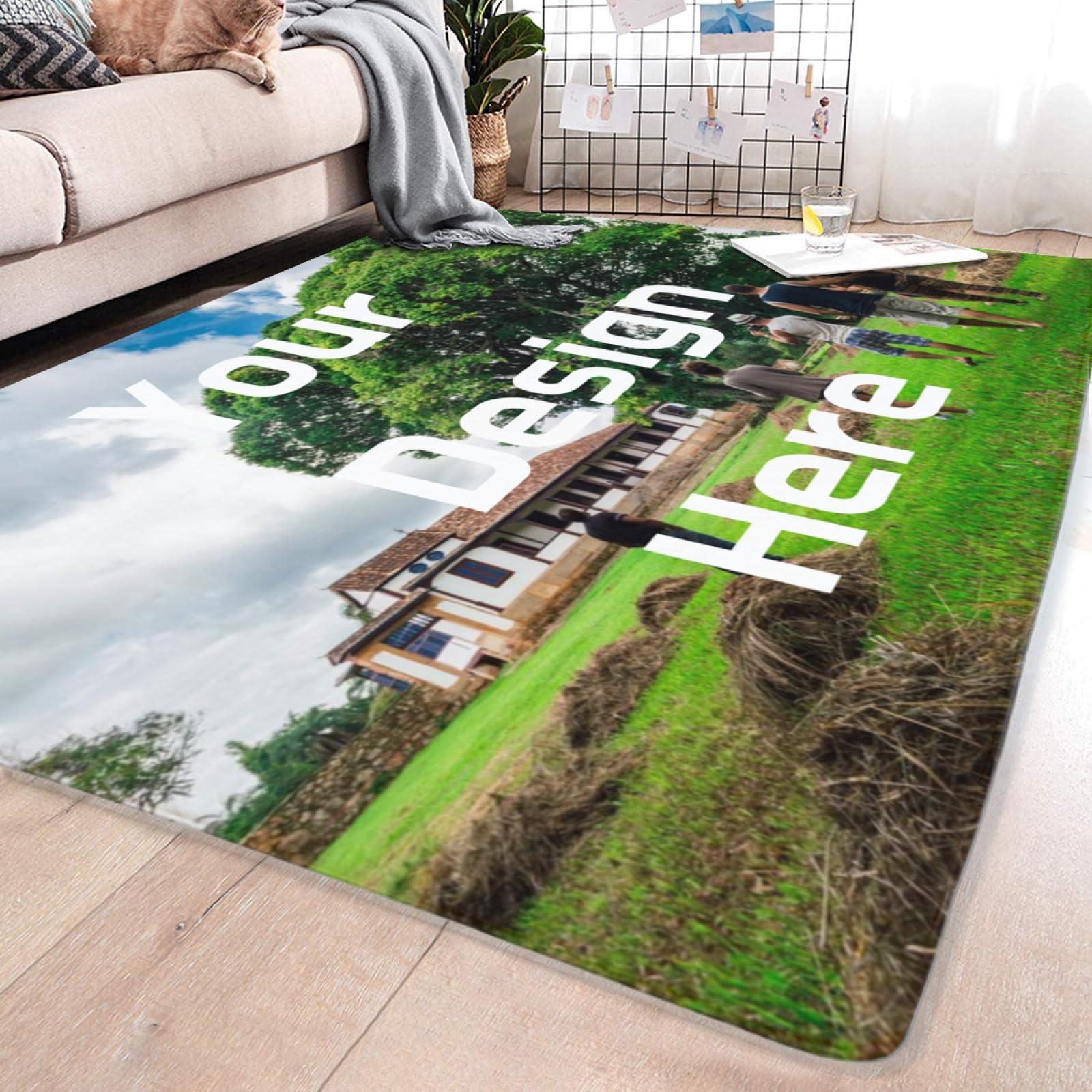 - Click the customize button, upload your photo, customize your own exclusive rug, and our team of designers will start to customize it for you to make great memories!