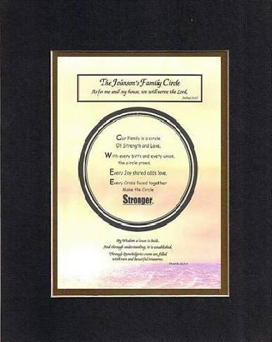 Beautiful and Inspiring Personalized Plaque for all gifting occasions. Person receiving your gifts will be thrilled and full with joy. Shower them with your love, give them a gift from the heart. It's a wonderful gift that will be cherished for years to come. - CAPTION FOR POEM - *Sentiments between Brackets are to be provided by Customer for Personalization. Please email us the required info. [The Johnsons Family Circle] As for me and my house, we will serve the Lord, Joshua 24.15 Our Family is a circle Of Strength and Love. With every birth and every union, the circle grows. Every Joy shared adds love. Every Crisis faced together Make the Circle Stronger. By Wisdom a house is built. And through understanding, it is established. Through knowledge its room are filled with rare and beautiful treasures. Proverbs 24:3-4