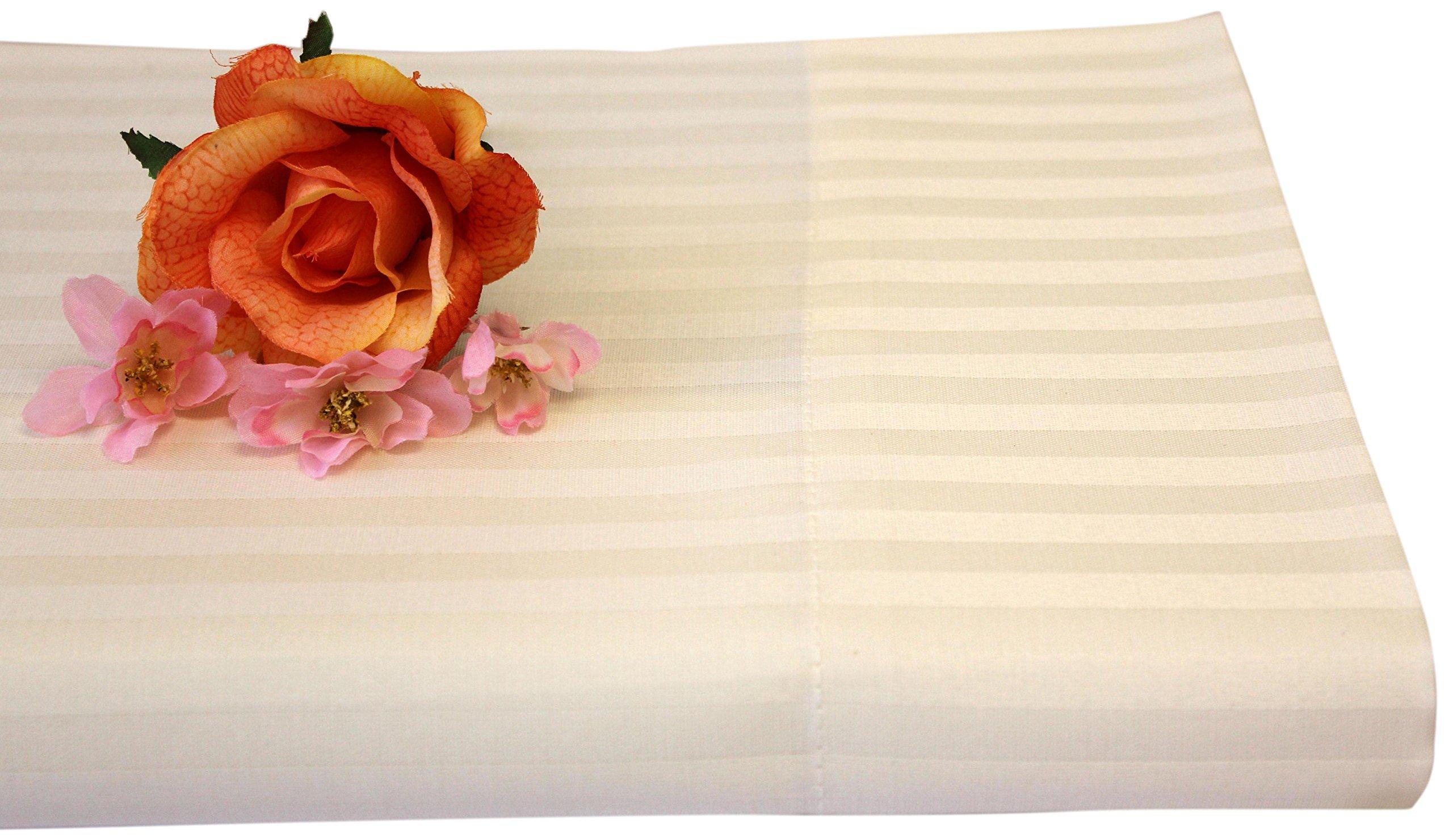 Pershire platinum collection of cotton rich damask woven stripe 60% cotton/40% polyester sheet set is great to have on hand. They feel smooth and soft to the touch. The king size flat sheet is 108x104; the king fitted sheet is 72x84+15, fully elastic for perfect fit on mattress up to 18" deep; the king pillow cases are 20x40. Easy care, washable, less wrinkle and dryable. Ivory.