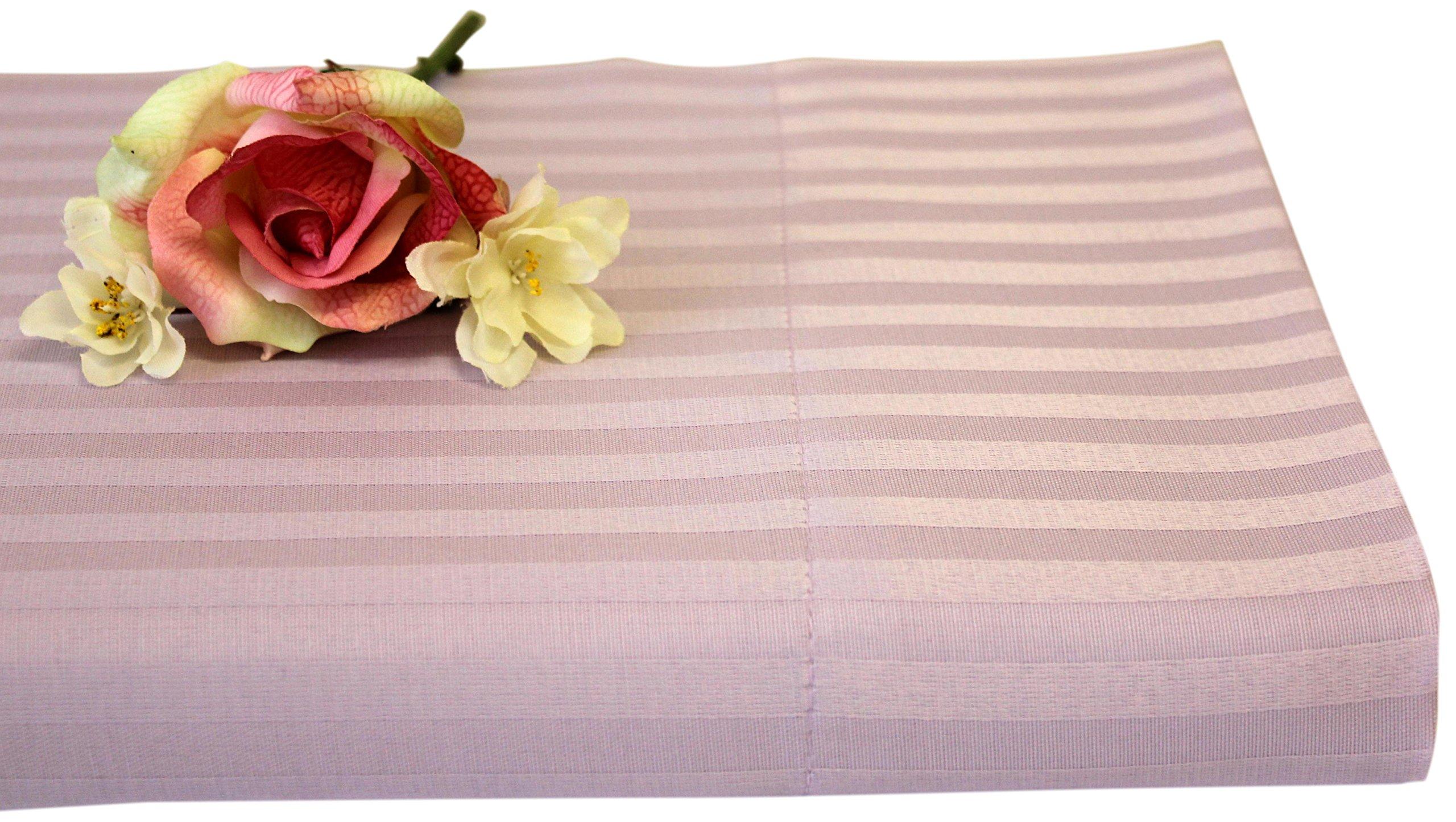 Pershire platinum collection of cotton rich damask woven stripe 60% cotton/40% polyester sheet set is great to have on hand. They feel smooth and soft to the touch. The queen size flat sheet is 90x102 ; the queen fitted sheet is 60x80+15, fully elastic for perfect fit on mattress up to 18" deep; the queen pillow cases are 20x30. Easy care, washable, less wrinkle and dryable. Lavender.