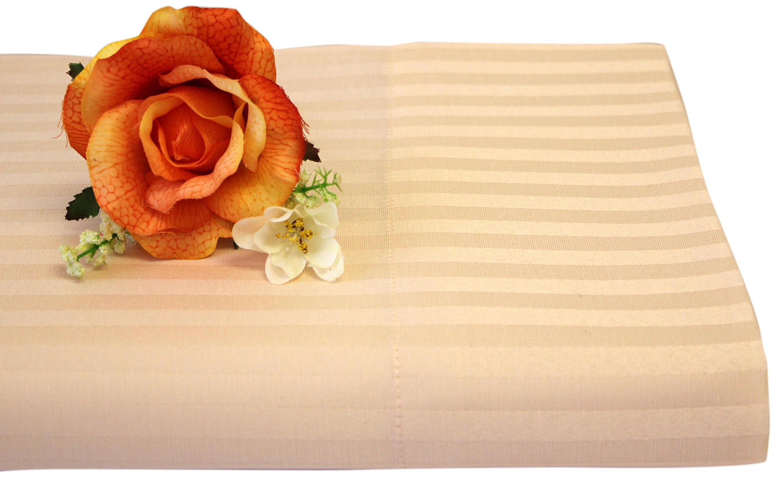 Pershire platinum collection of cotton rich damask woven stripe 60% cotton/40% polyester sheet set is great to have on hand. They feel smooth and soft to the touch. The queen size flat sheet is 90x102 ; the queen fitted sheet is 60x80+15, fully elastic for perfect fit on mattress up to 18" deep; the queen pillow cases are 20x30. Easy care, washable, less wrinkle and dryable. Linen.
