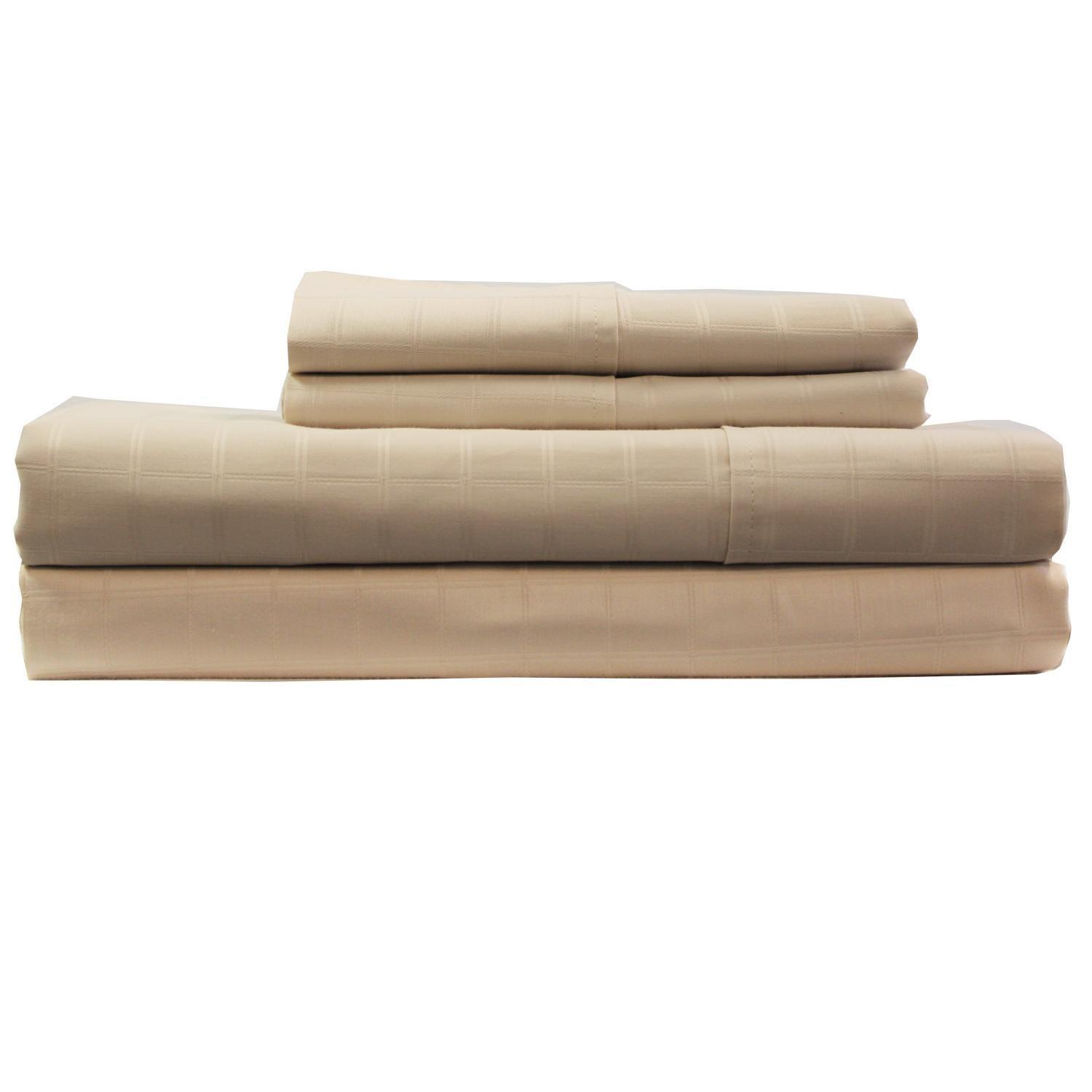Egyptian Cotton sheets are silky soft for a comfortable sleep and long wear. This 480 thread count Perth shire Platinum brand is a 1" Damask window pane design sheet set made of single ply ultra soft 100% Egyptian cotton yarn woven on state of the art air jet looms to give you a welcoming sleep and making the beds virtually impossible to leave. The king size flat sheet is 108" x 104"; fitted is 72"x84" and fully elastic all around. Thicker mattresses need not fear the set's fitted sheet, as it is willing to stretch up to 18" deep. Pillow cases are 20"x40" finished with 4" hem. These sheets are easy care: wash in cold water; tumble dry low. Ash.