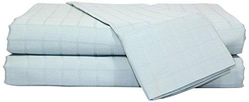 Egyptian cotton sheets are silky soft for a comfortable sleep and long wear. This 480 thread count Perthshire platinum brand is a 1" damask window panel design sheet set made of single ply ultra soft 100% Egyptian cotton yarn woven on state of the art air jet looms to give you a welcoming sleep and making the beds virtually impossible to leave. The queen size flat sheet is 90" x 102"; fitted is 60"x80" and fully elastic all around. Thicker mattresses need not fear the set's fitted sheet, as it is willing to stretch up to 18" deep. Pillow cases are 20"x30" finished with 4" hem. These sheets are easy care: wash in cold water; tumble dry low. Ocean blue.