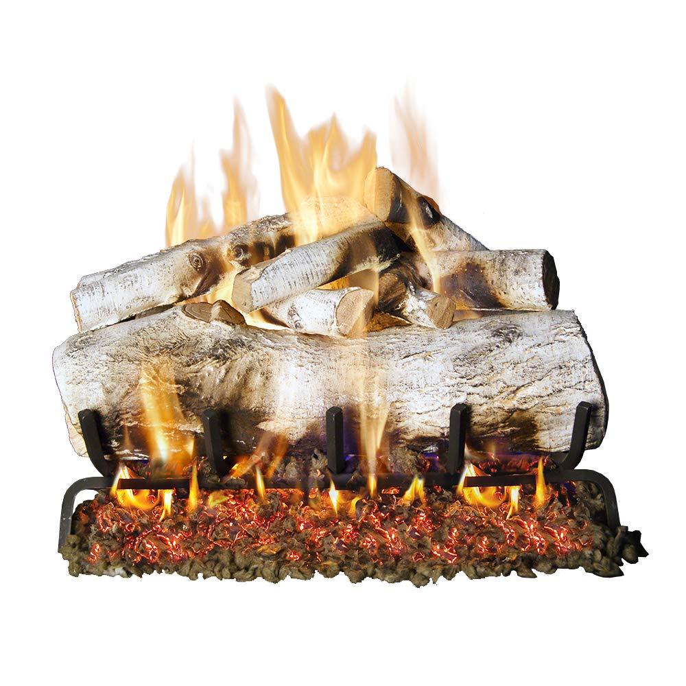Peterson Real Fyre 18-Inch Mountain Birch Gas Log Set with VENTED G45 Natural Gas Burner. MBW-18 + G45-18/20. The craftsmanship of Real-Fyre Designer Series Gas Logs captures the realism, texture and subtle nuances found in nature. These hand painted originals, modeled from real world samples, are sure to add a touch of elegance to any home. Experience the subtle beauty and soothing comfort of a Real-Fyre Designer Series gas log display. This Peterson Real Fyre gas log set includes: 6 Ceramic Refractory Hand Crafted Gas Logs, Dual Flame VENTED Natural Gas Burner, Custom Grate, Glowing Embers, Silica Sand, Damper Clamp and Flexible Gas Line Connector Kit. Burner Output: 75,000 BTUs. Burner ignition method: match light using your existing wall key valve to control the flow of gas - No separate valve is included with this set. (ONLY for use in a VENTED Fireplace with NATURAL GAS)