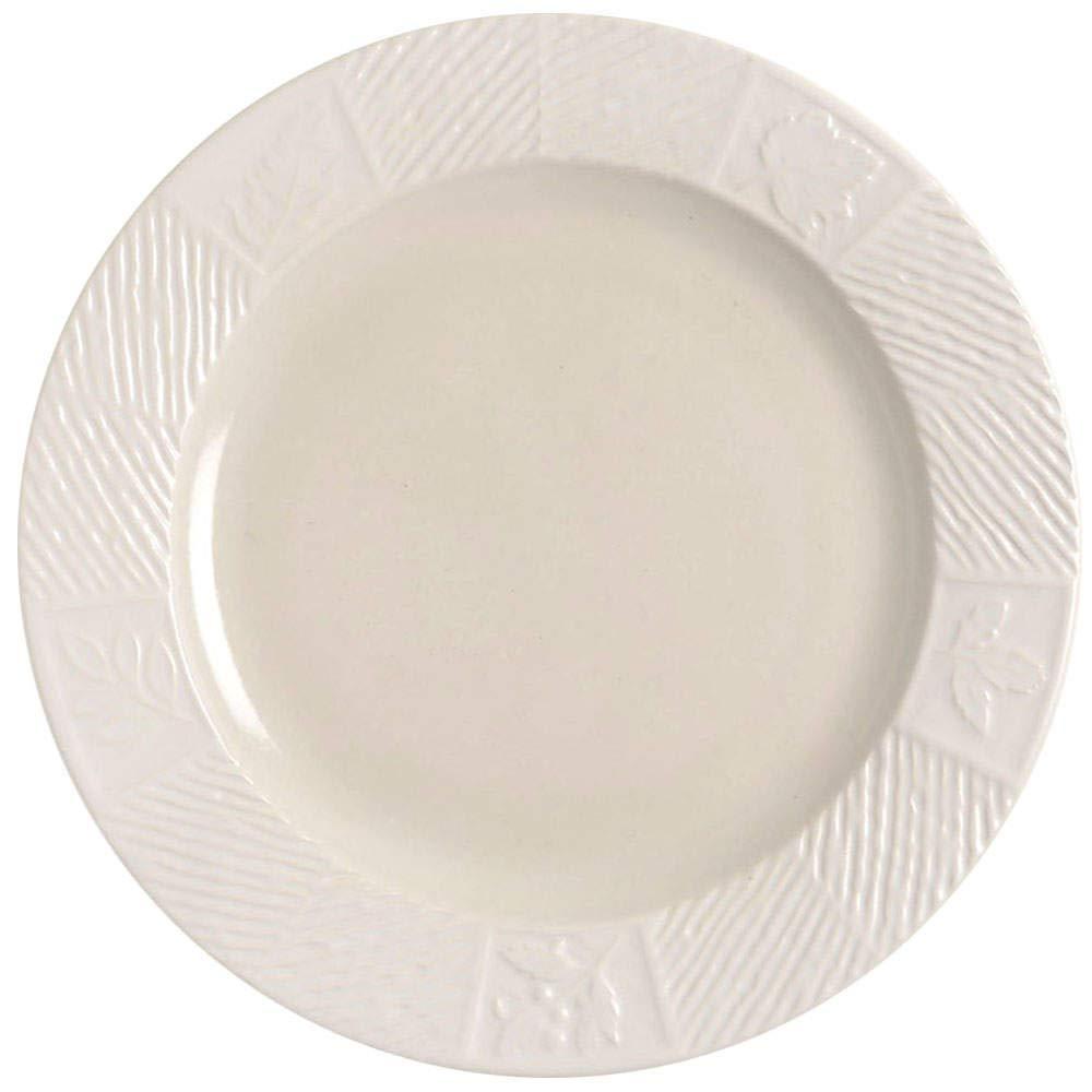 Amazon.com\n\nSummoning wind-swept dunes and soft desert breezes, meals served on Sierra dinnerware offer a serene break from the day. This 11-inch attractive foundational piece to a place setting also serves as a platter, framing food inside the lovely border. Featuring embossed leaves and sculpted textures around the border in both matte and gloss glazes, the contemporary style fits traditional tastes, easily dressing up casual occasions. The distinctive design in two subtle tones of off-white with the palest hint of pastel coordinates with the Sierra collection and blends with most decors. Crafted in heavy stoneware that is chip-resistant and safe in the oven, freezer, microwave, and dishwasher. Made in the USA, it carries Pfaltzgraff\'s three-year warranty. --Roberta Cruger\n\nProduct Description\n\nPfaltzgraff Sierra Dinner Plate