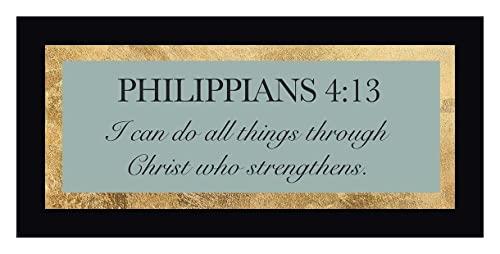 This 14" x 30" framed canvas art print of Phillippians 4:13 by CAD Designsis created on the finest quality artist-grade canvas, utilizing premier fade-resistant archival inks that ensure vibrant lasting colors for years to come. Every detail of the artwork is reproduced to museum quality specifications by our talented graphic artists. This magnificent canvas print is custom framed by one of our professional framers in a 2 wide black frame for that ultimate designer look. Your framed canvas print will arrive to your door ready to hang with all necessary hanging hardware. Our huge selection of over 200,000 magnificent works of art, along with an exclusive collection of handcrafted frames, makes Canvas Art USA your one stop source for the finest art for sale at direct wholesale prices.