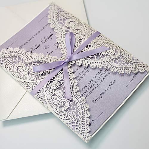 25-Pack Lavender Purple Wedding Invitations with Ribbon Bow and Envelopes, 5x7" Invite Cards for Wedding / Bridal Shower / Birthday Party