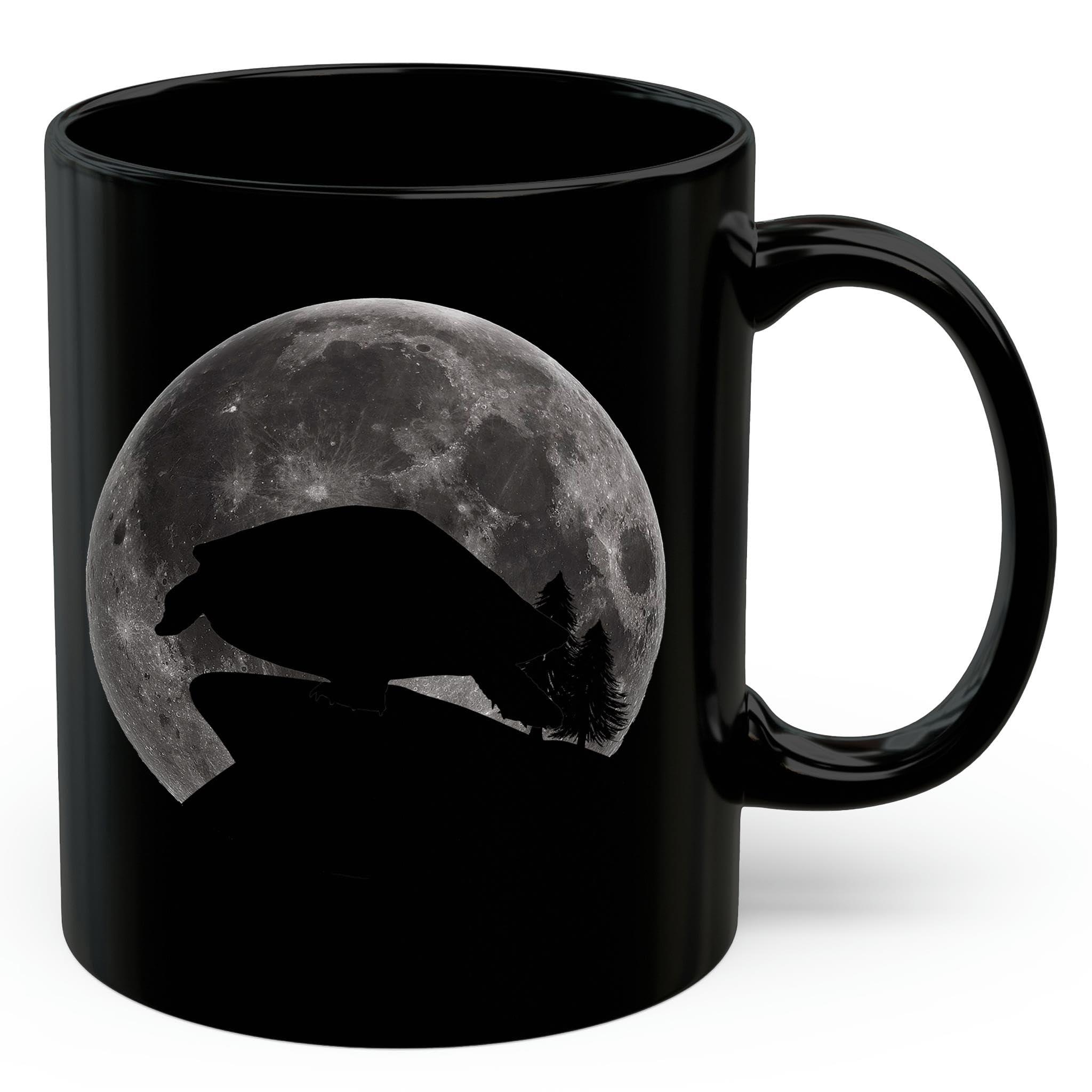 - It's microwave and dishwasher-safe, and made of black, durable ceramic. Size: 11oz fluid capacity.