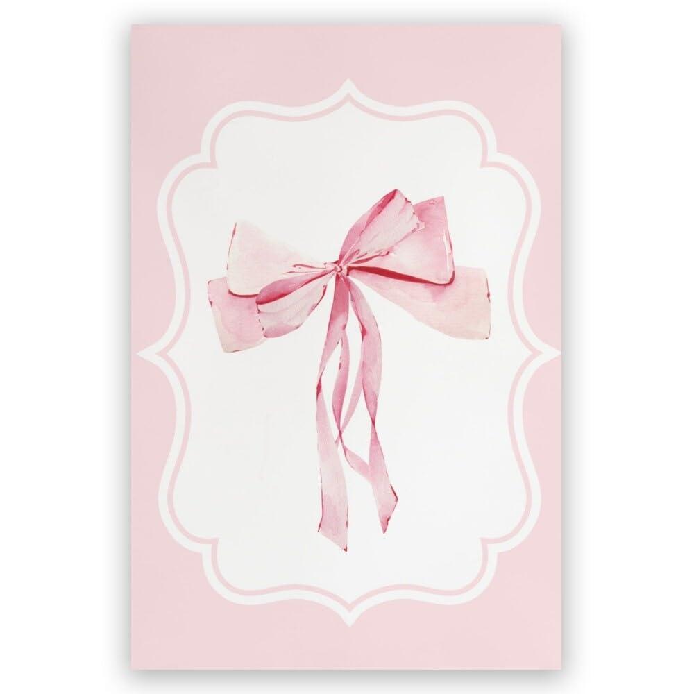 Generic Pink Bow Poster Coquette Wall Art Preppy Pink Coquette Bow Canvas Print Oil Painting Wall Art Preppy Poster Trendy Preppy Wall Art Teenage Girl Room Bedroom Wall Decoration12x18inch Unframed
