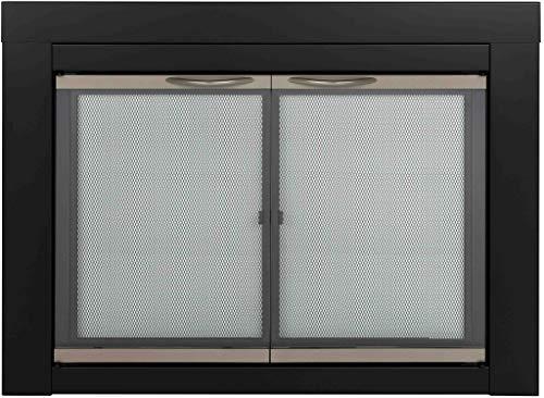 The functional and decorative Pleasant Hearth stylish glass door fire screen is designed to enhance your traditional masonry fireplace hearth while at the same time help to reduce heat and air conditioning loss up the chimney by as much as 90% while the fireplace is not in use.