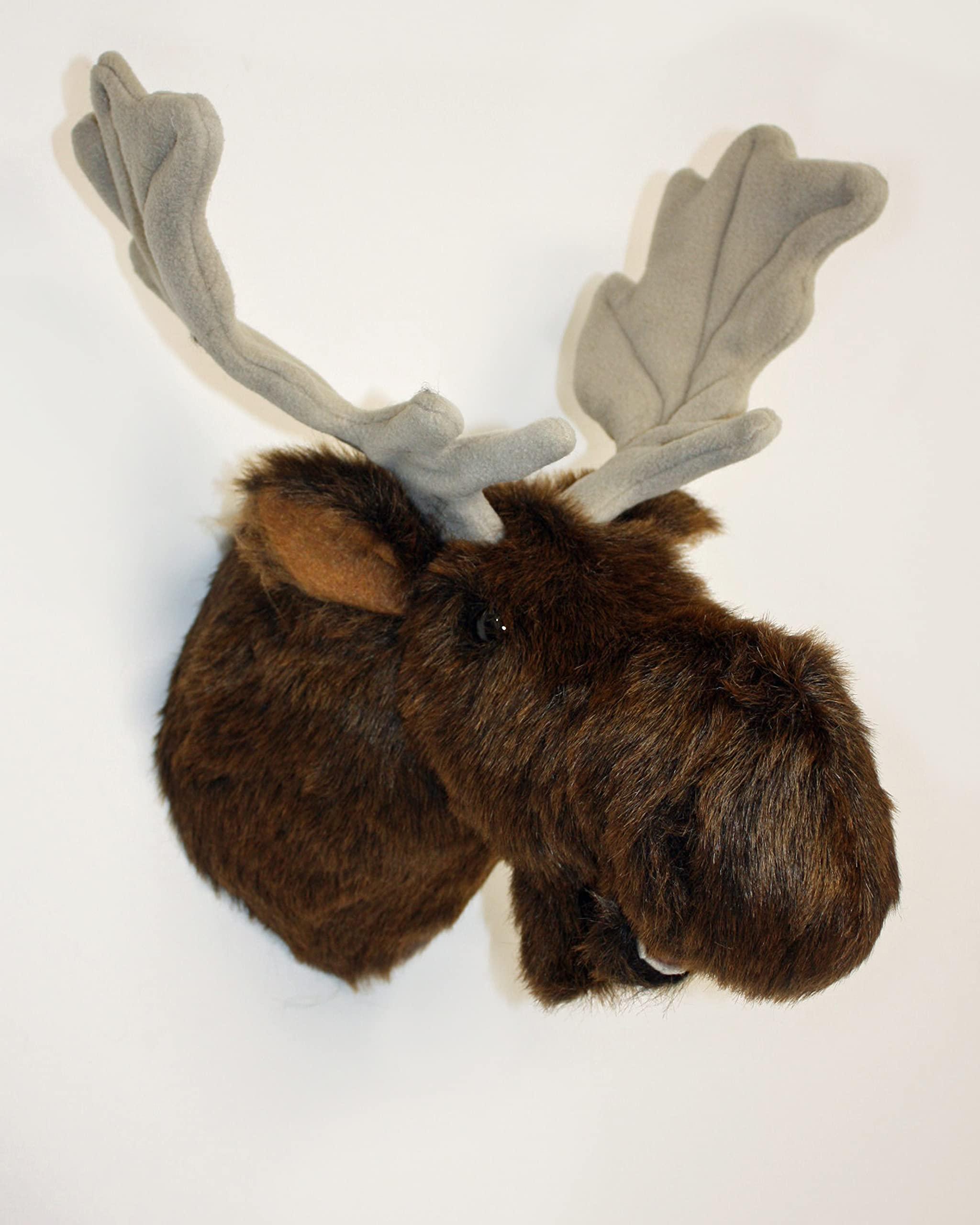 George was our first mount- designed to be natural looking and friendly. You can hang George anywhere. Just don't hang him so high you can't reach out and pat him. DETAILS: Thick country brown faux fur. 20mm eyes. Deep nostrils. Lightly adjustable lower jaw. Fabric teeth and tongue. Fully adjustable 9" long polar fleece antlers. Almost seamless construction. Firmly stuffed with non-allergenic polyfill. Finished as a shoulder mount. Ready to hang and enjoy. We regularly ship internationally. If you are ordering from outside the U.S, please contact us and we will be happy to make arrangements for George's safe journey.
