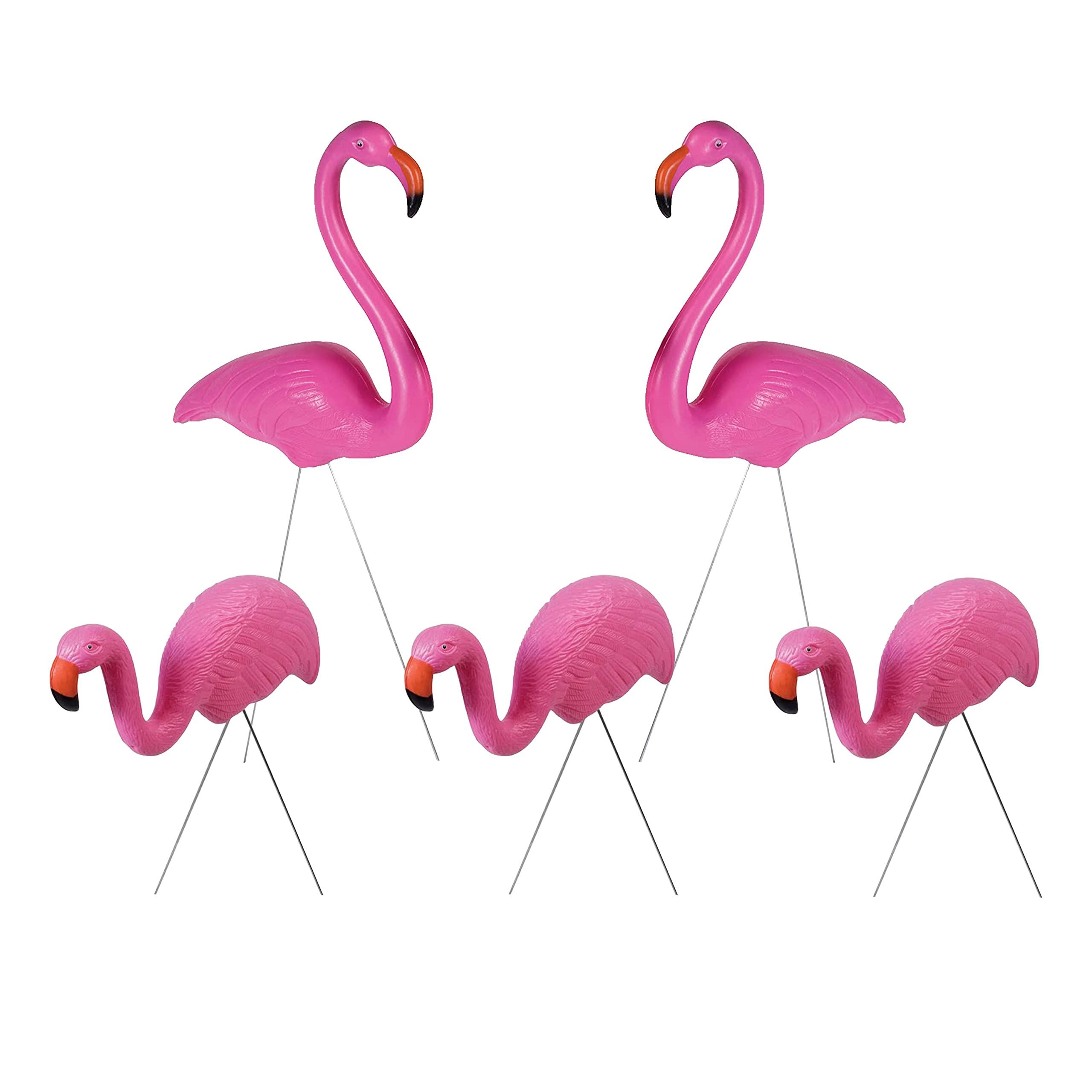 - : Our pink yard flamingos are crafted from heavy duty plastic material & stainless-steel legs. These lawn flamingos are built to last all season.