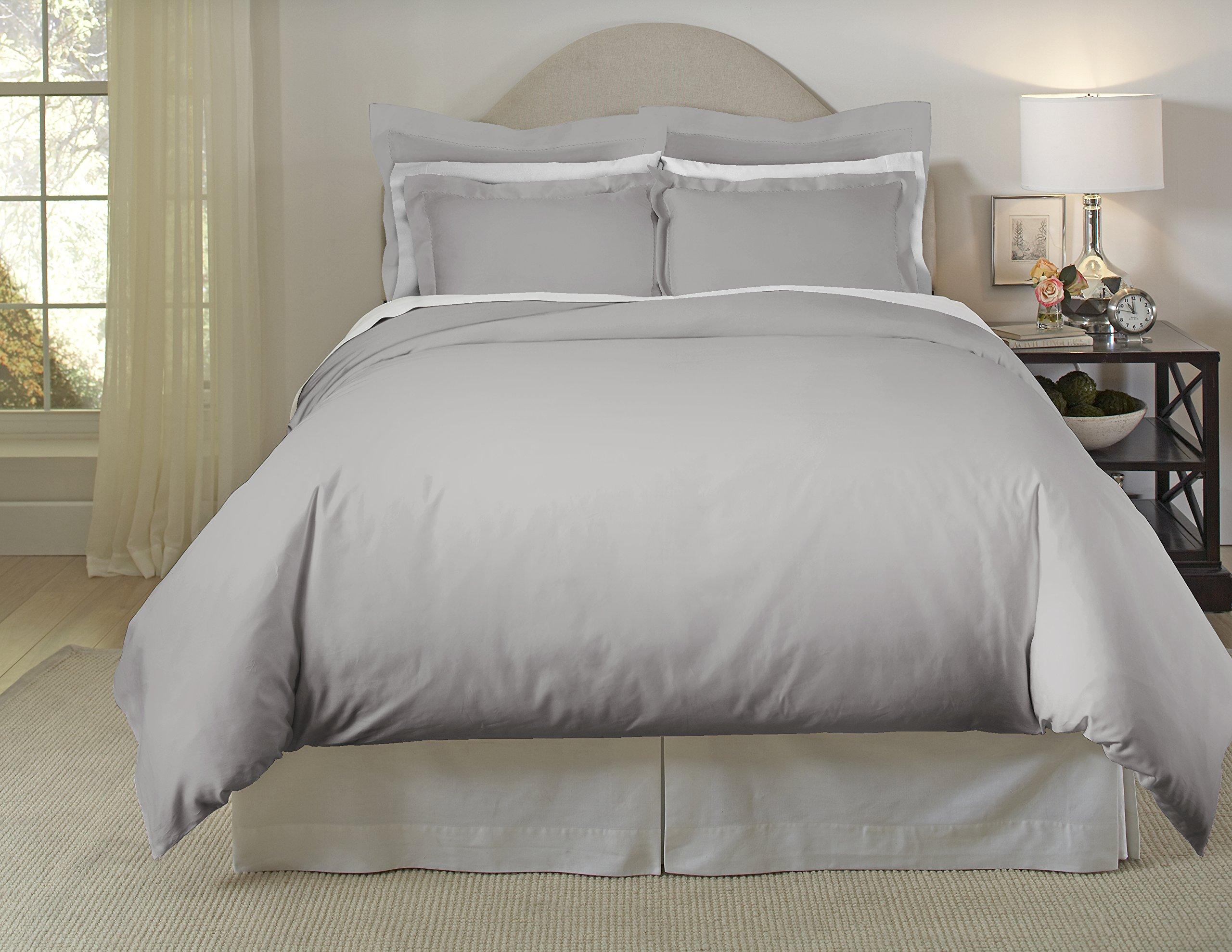 The luxurious 620 thread count duvet set is made of single-ply, ultra soft, 100-percent long staple cotton. This silky set is sure to enliven any bedroom. The duvet cover has a zipper closure and ties in the corners to keep a duvet in place.
